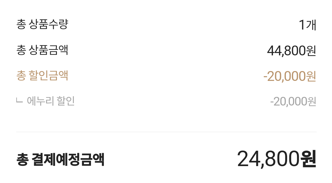 최근 이마트 스마트 오더에 44,800원에 풀렸는데, 재미있는 건 결제창에 들어가면 에누리로 2만 원이 추가 할인된다. 그래서 주문한 후 찾으러 갔는데... 마트에서도 그냥 24,800원에 팔고 있다. 하, 낚였... ㅠㅠ