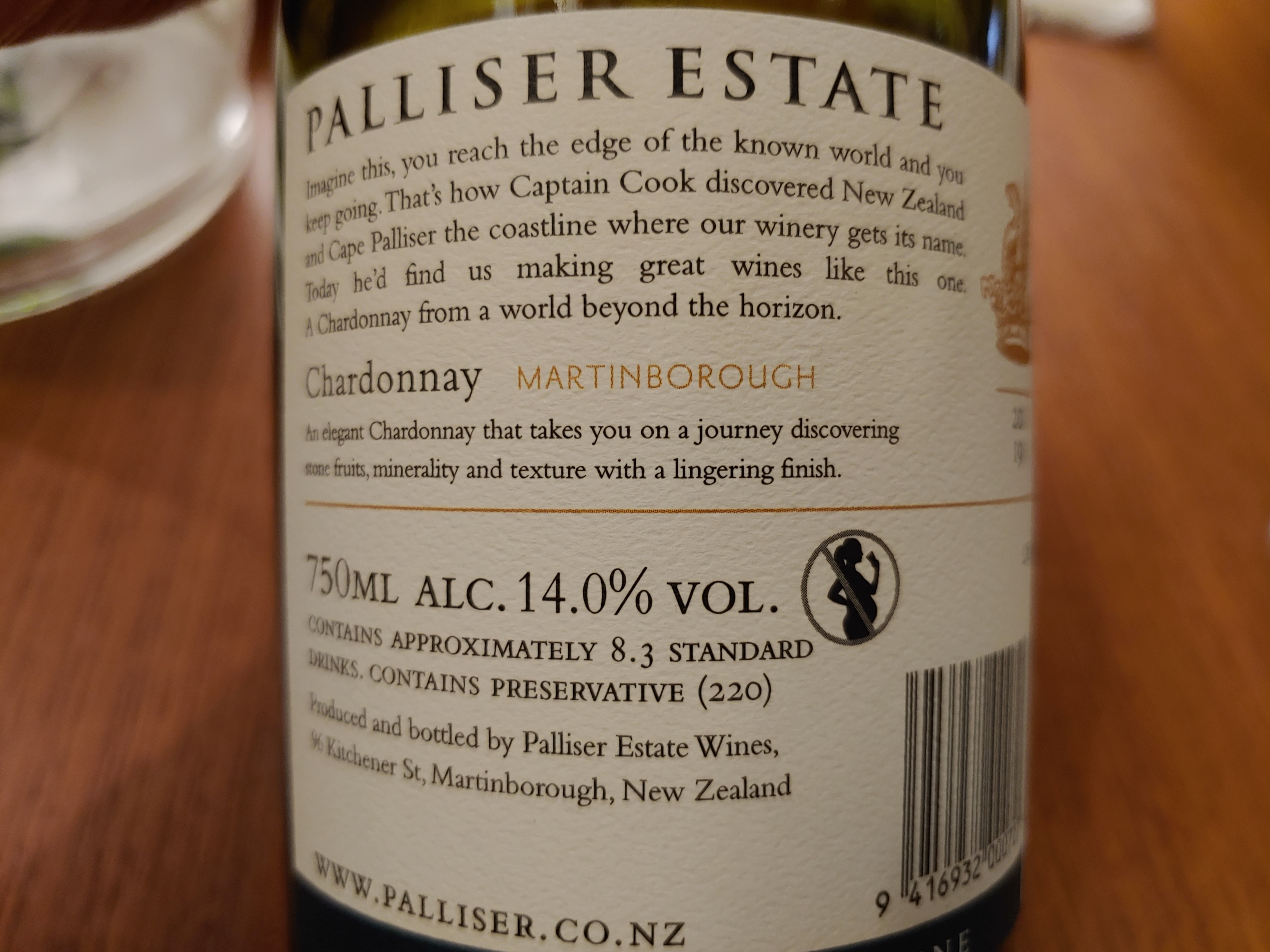 둘 다 뉴질랜드의 펄리셔 에스테이트(Palliser Estate)의 샤르도네(Chardonnay)였는데, 맛있는 걸 먼저 먹기로 했다. 취하고 나면 맛을 모르니까 ㅋㅋㅋ