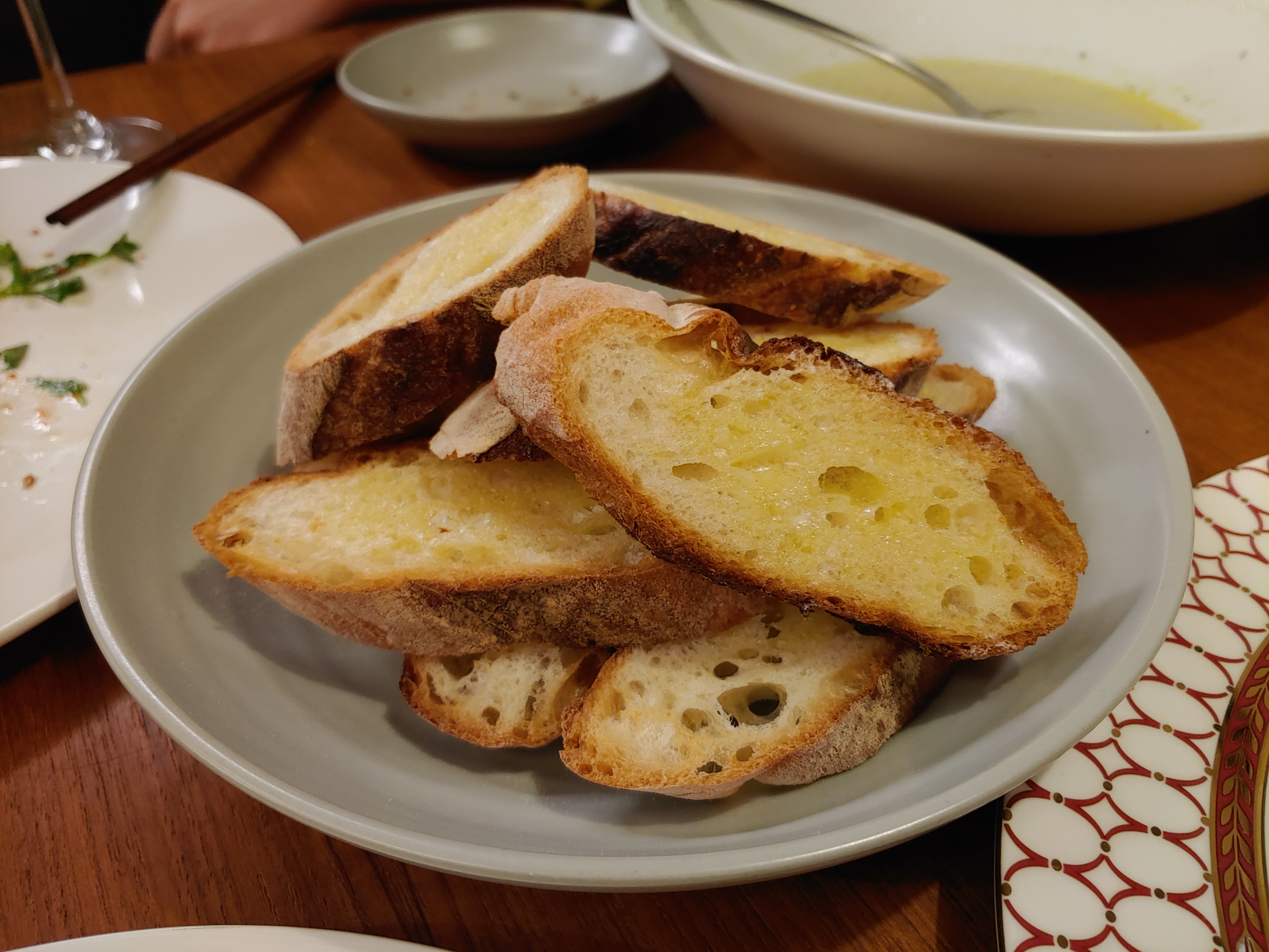 함께 내어 주신 버터 내음 풍기는 고소한 빵과 함께 먹으면 핵꿀맛. 아아, 또 먹고 싶다...