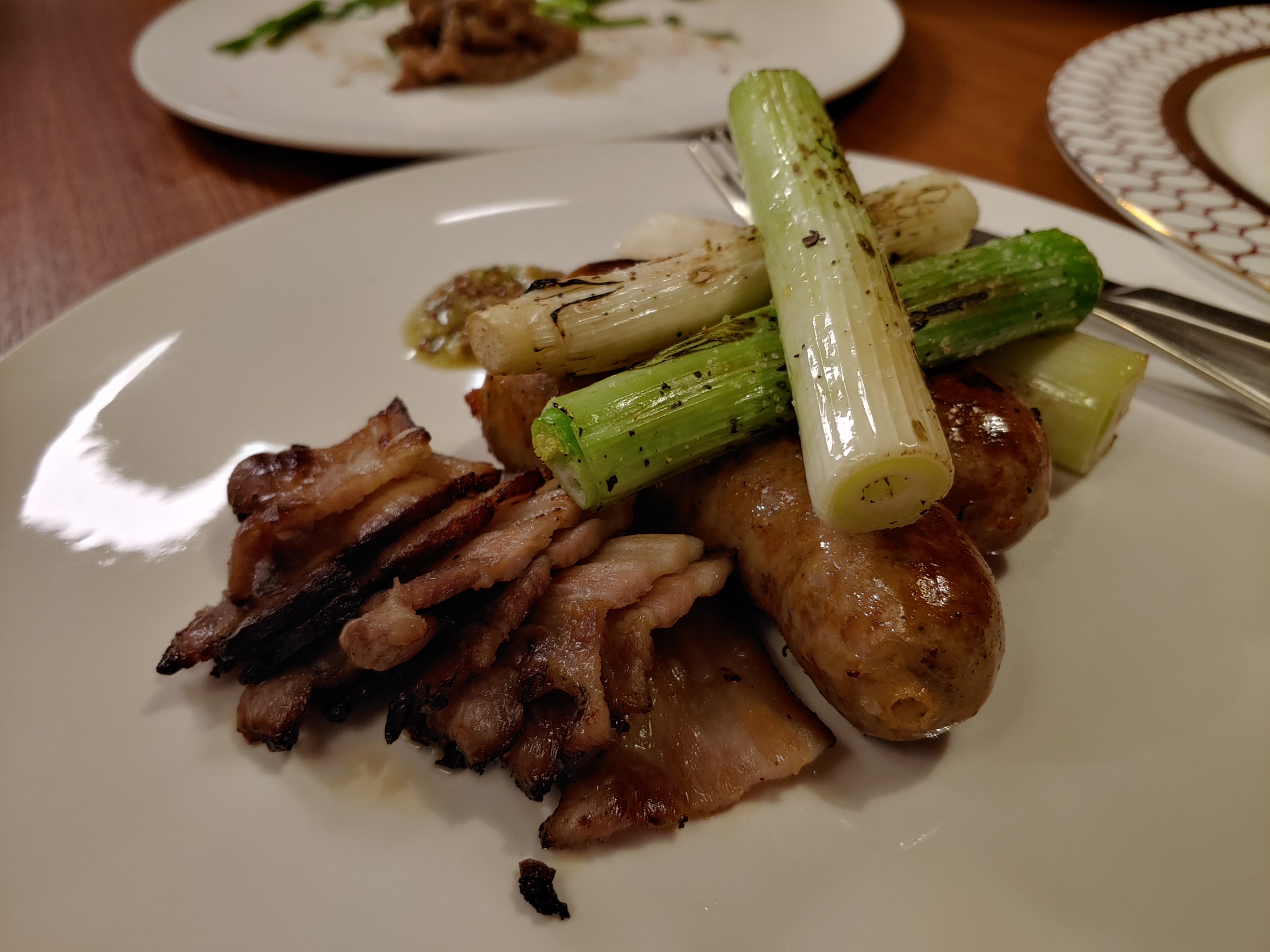 수제 소시지와 삼겹살 구이. 부의 상징인 대파를 저렇게 푸짐하게 올려 주시다니 ㅎㅎㅎ