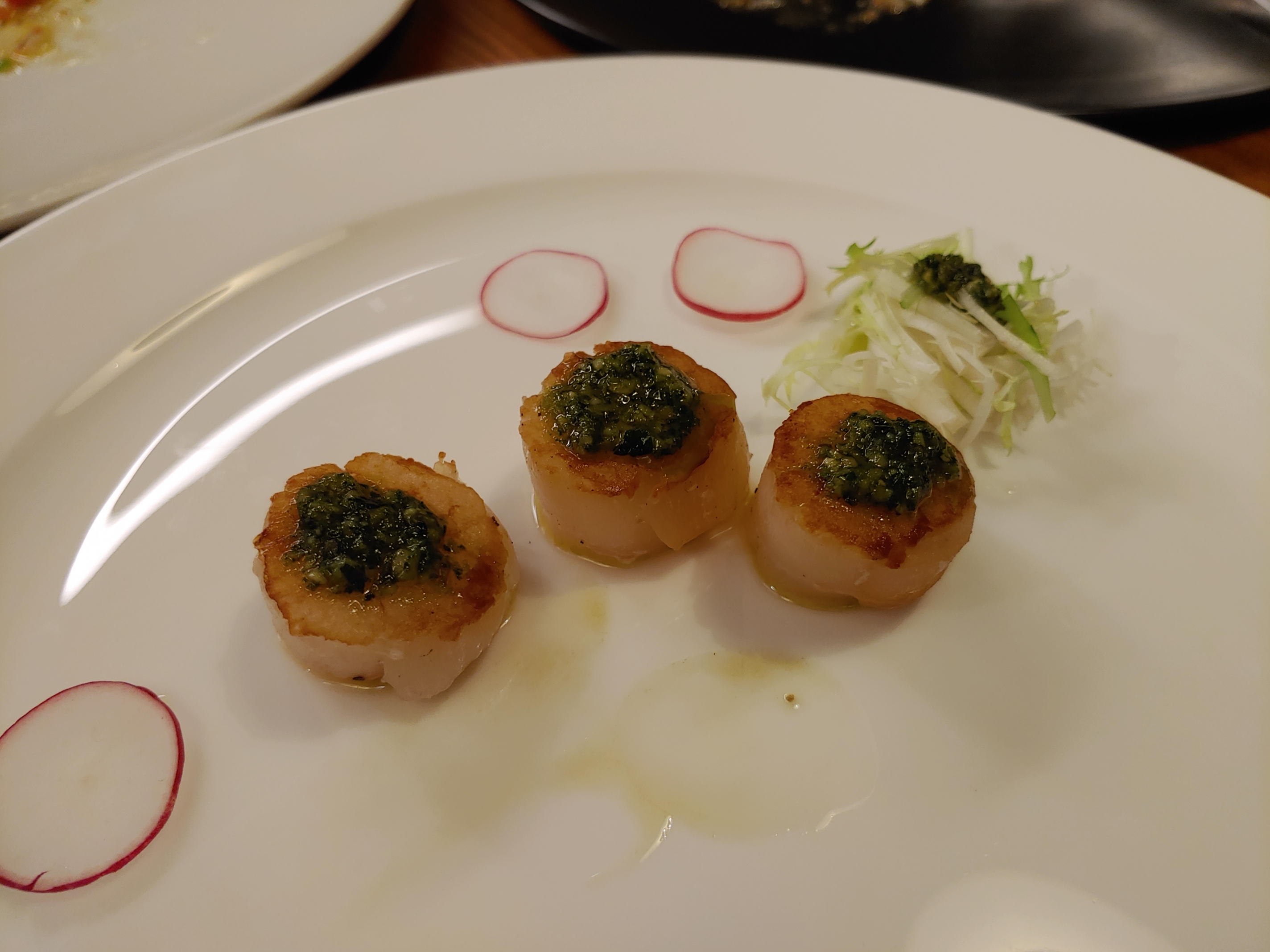 이쯤에서 와인을 한 병 더 마셨는데 사진을 못 찍었다;;; 와이넬에서 수입하는 Vigneti del Vulture, Piano del Cerro Aglianico del Vulture Riserva Basilicata 였던 걸로 기억. 다들 맛이 강하다고 했는데 딱 그런 와인이다. 진하고 깊은 맛과 촘촘한 타닌을 기반으로 한 강건한 구조. 그러면서도 우아함과 부드러움을 겸비한 와인. 덕분에 식사비가 확 올랐다는 소문이...