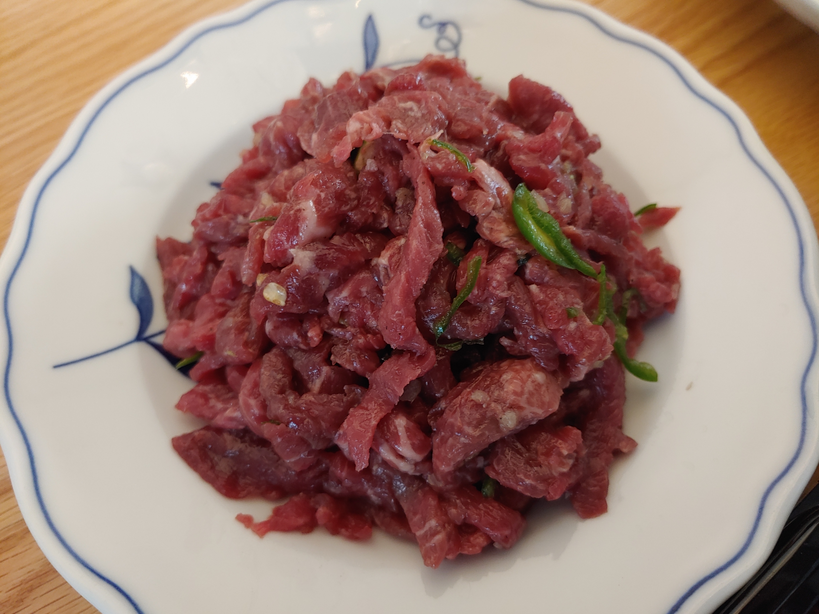 지난번에 먹어보고 반해서 두 팩 주문한 화식한우 육회. 고기만 씹어먹어도 맛있을 것 같은 비주얼. 갑분 육식동물...