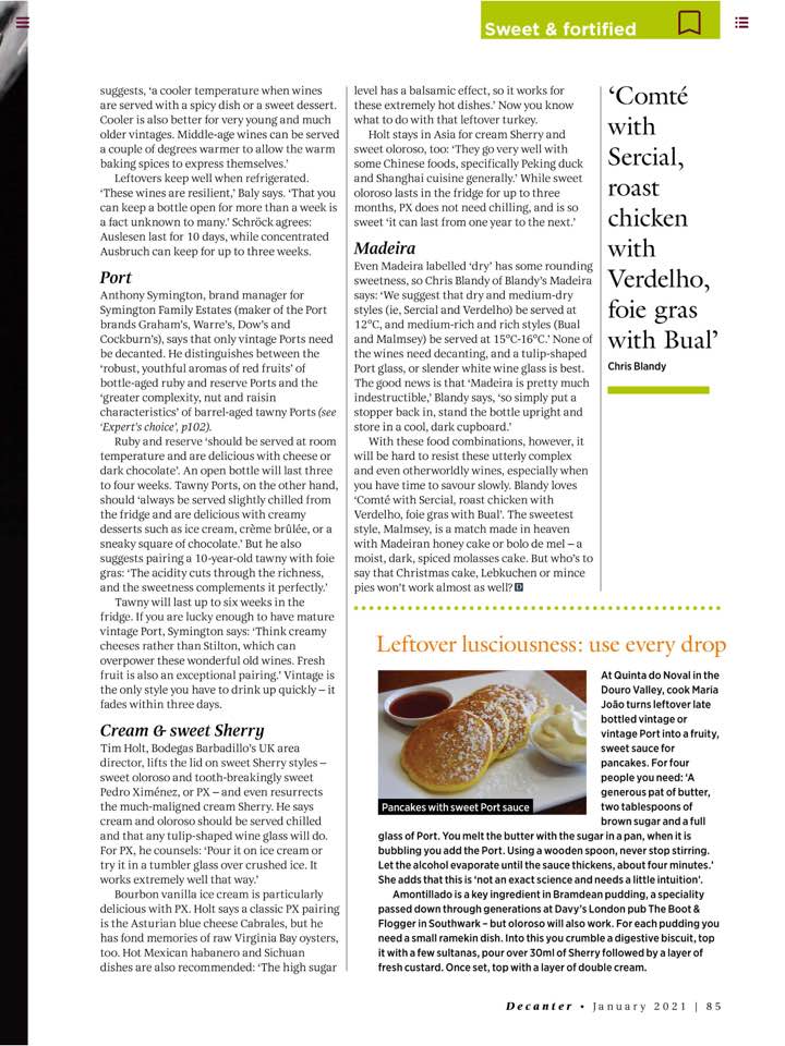영국 와인 잡지 <디캔터(Decanter)> 1월호에 실린 스위트 와인과 주정강화 와인(fortified Wine) 음용법과 보관법. 상당히 유용한 정보라 따로 스크랩해 둔다.