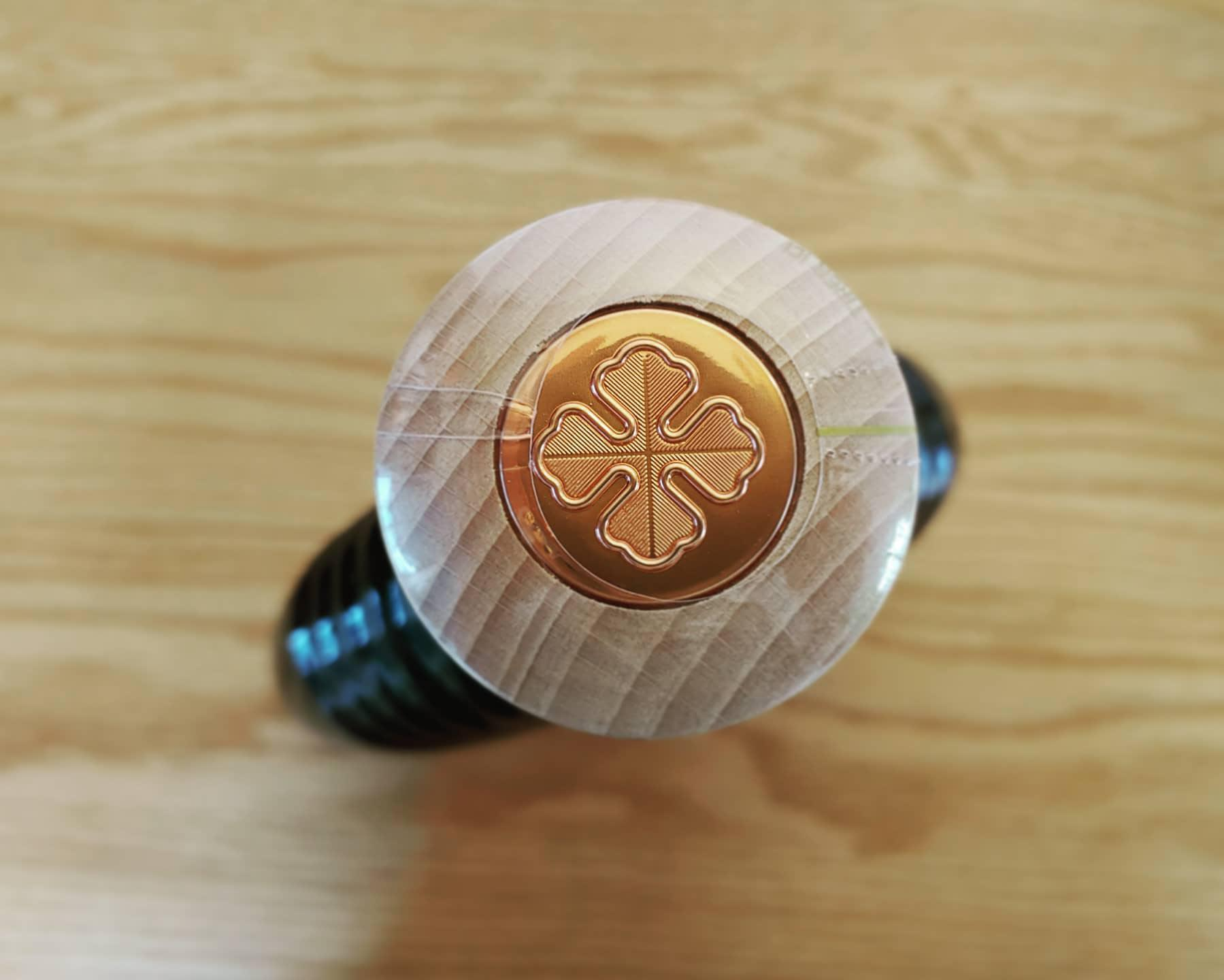 뚜껑 상부에 새겨진 네입 클로버 같은 카뮤의 문양. 나무 질감과 어우러져 상당히 고급스럽다.