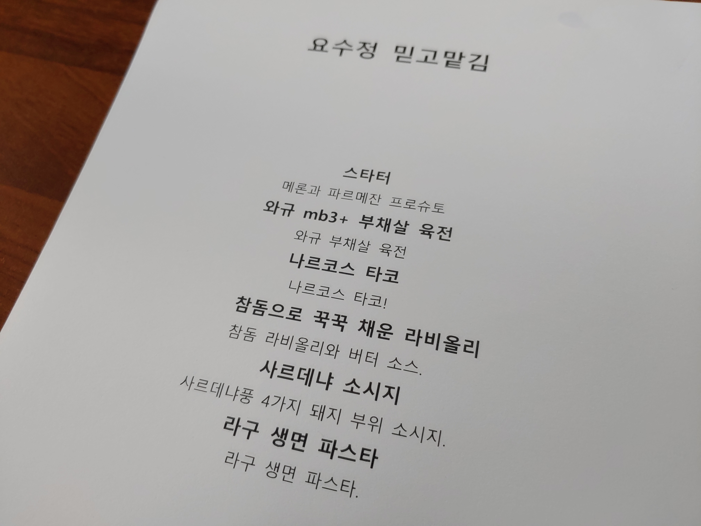 와인 리스트. 요수정 모임에서 이렇게 처음부터 끝까지 묵직한 놈들로만 구성된 적이 있었던가. 바롤로가 가장 가벼웠...