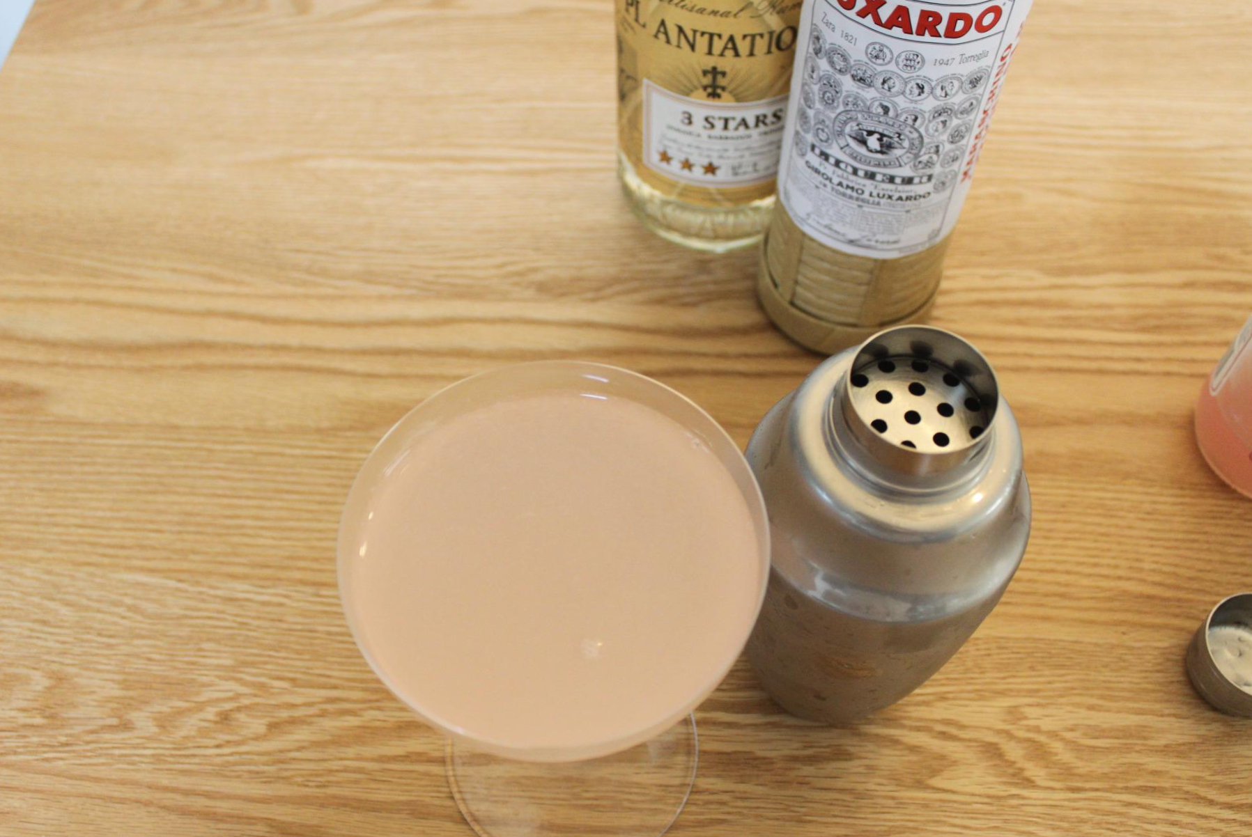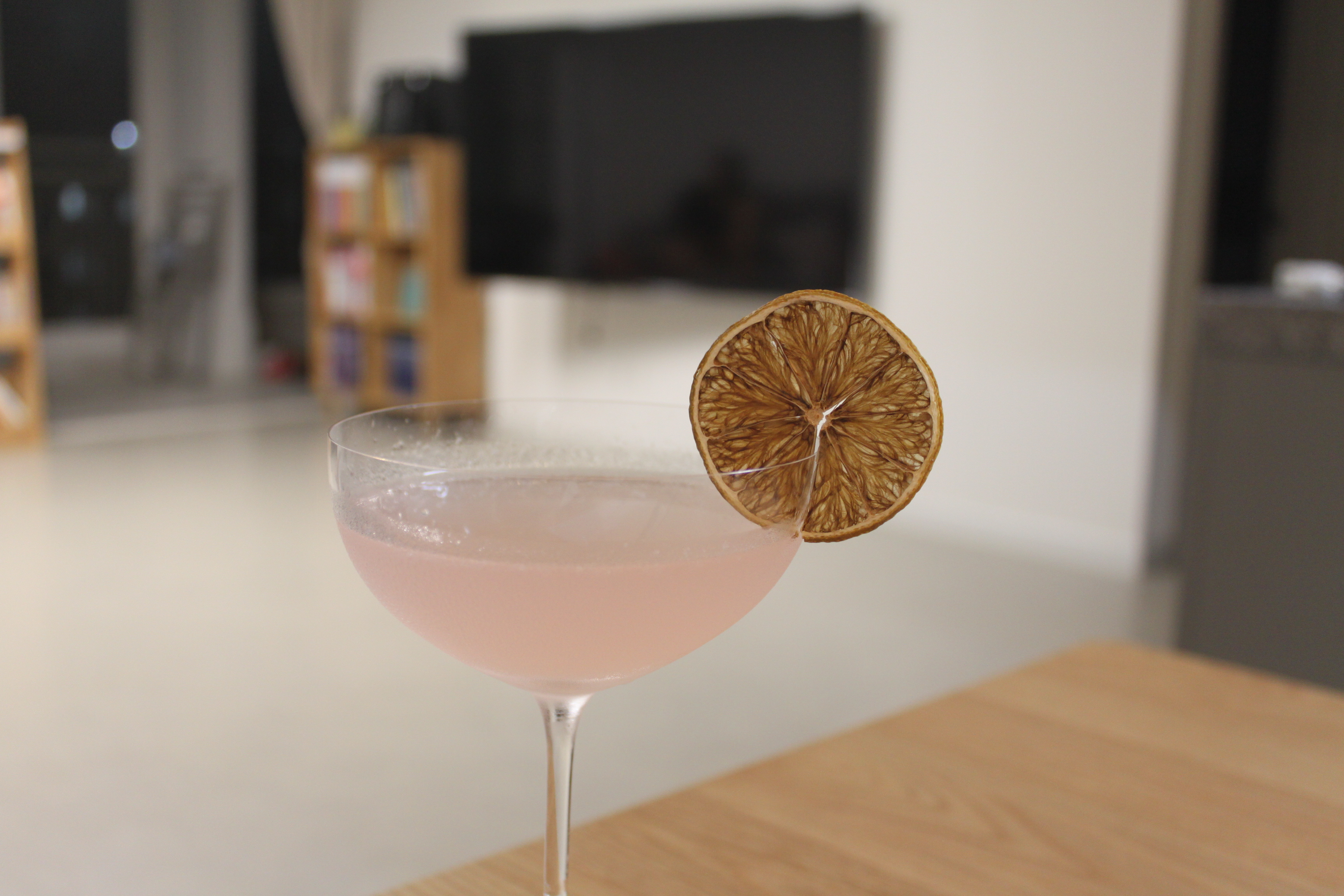 완성. 일단 은은한 핑크 컬러가 너무나 마음에 든다. 오리지널 자몽 주스를 쓰는 것보다 컬러 면에서는 확실히 베네핏이 있을 듯. 코를 대니 15ml 밖에 들어가지 않은 마라스키노 리큐르가 존재감을 뽐낸다. 거기에 달큼한 럼 풍미와 새콤한 시트러스 풍미가 슬쩍 묻어나는 느낌.