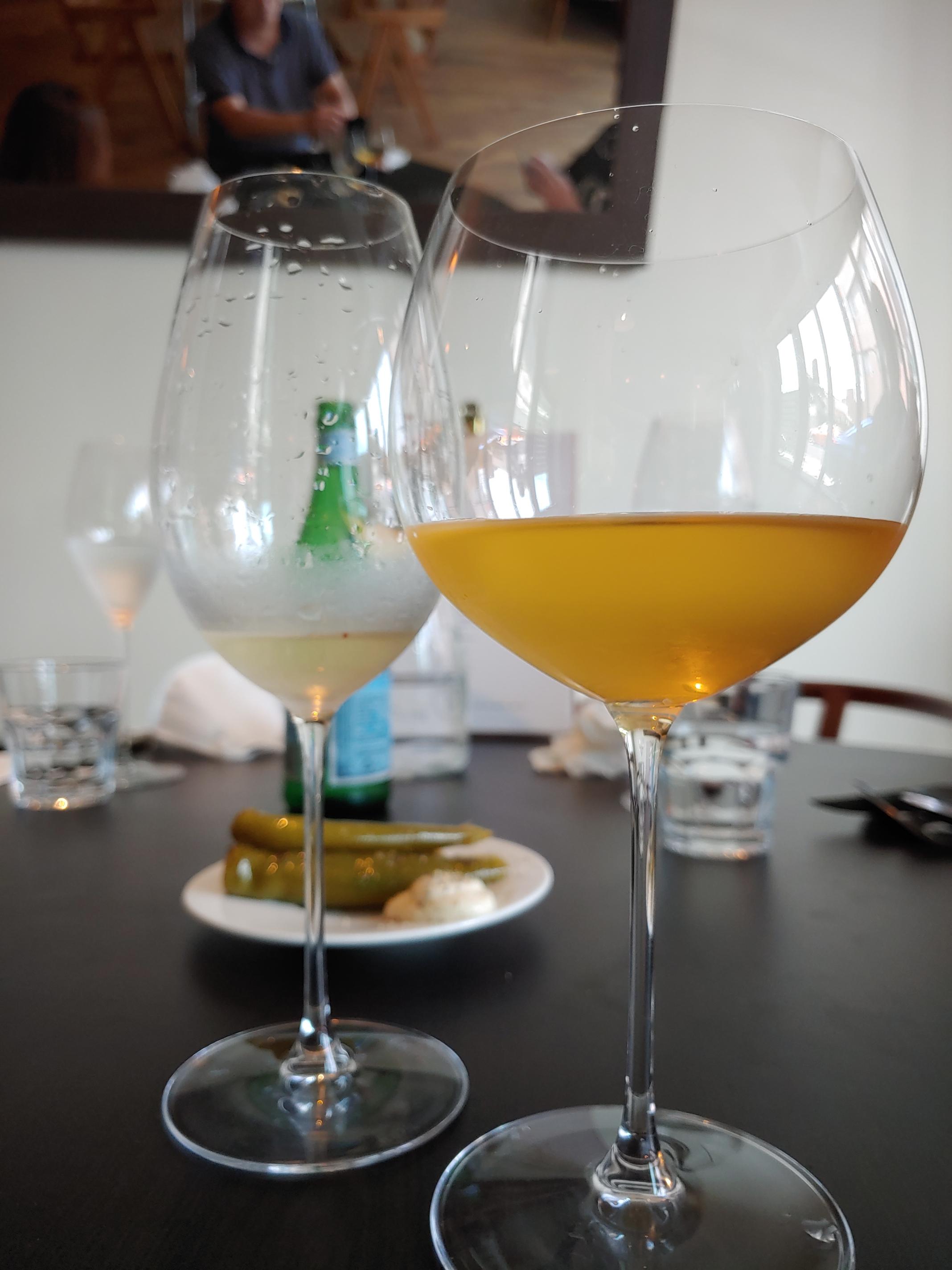음식이 나오길 기다리며 첫 와인. Goisot Saint-Bris. 빈티지는 보지도 않았다.