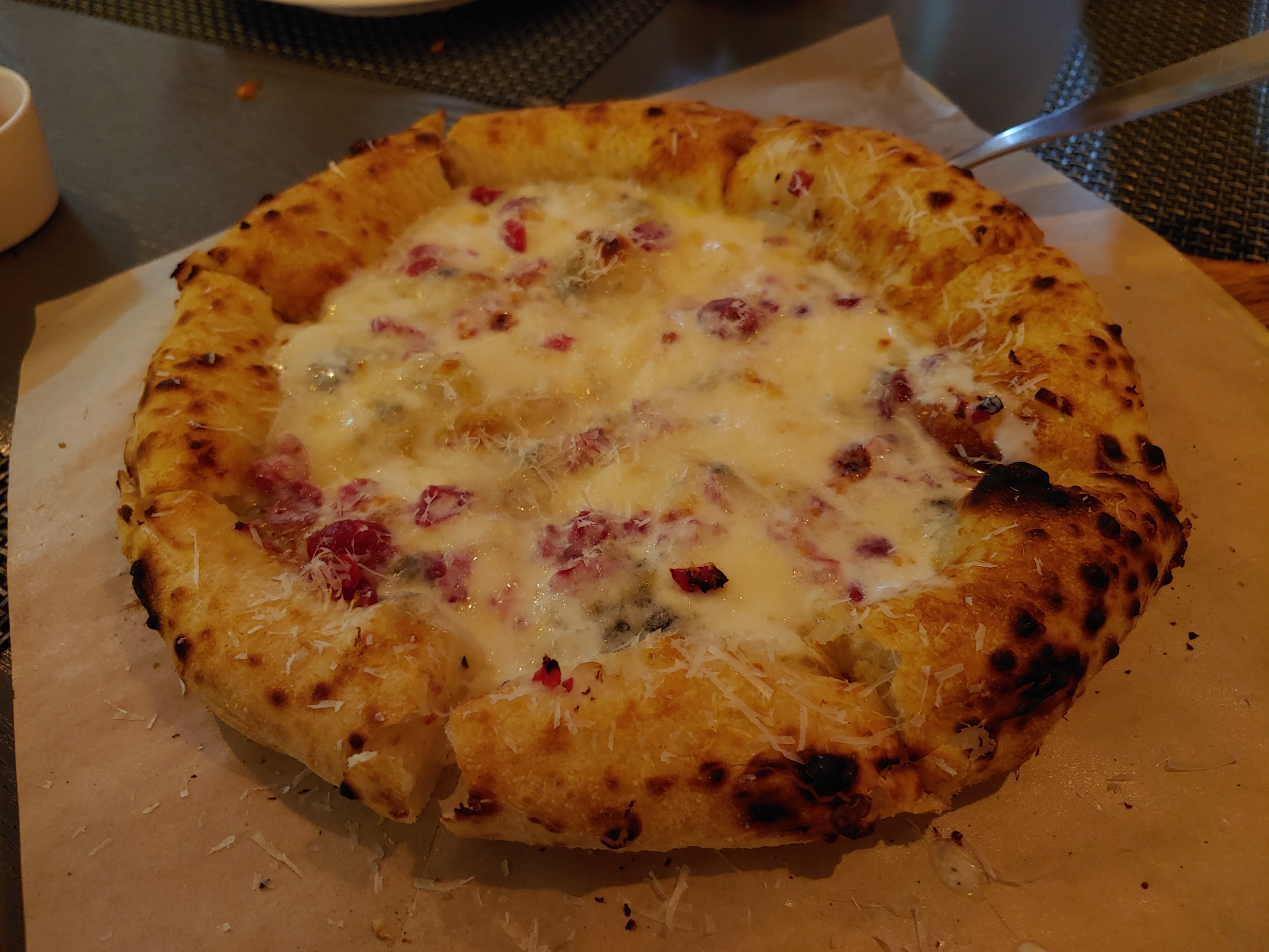 살짝 구워 식감이 좋은 수제 뇨끼. 사과나무에 4시간 직접 훈연한 베이컨에 레드 페퍼로 맛을 내셨다고. JMT이다.
