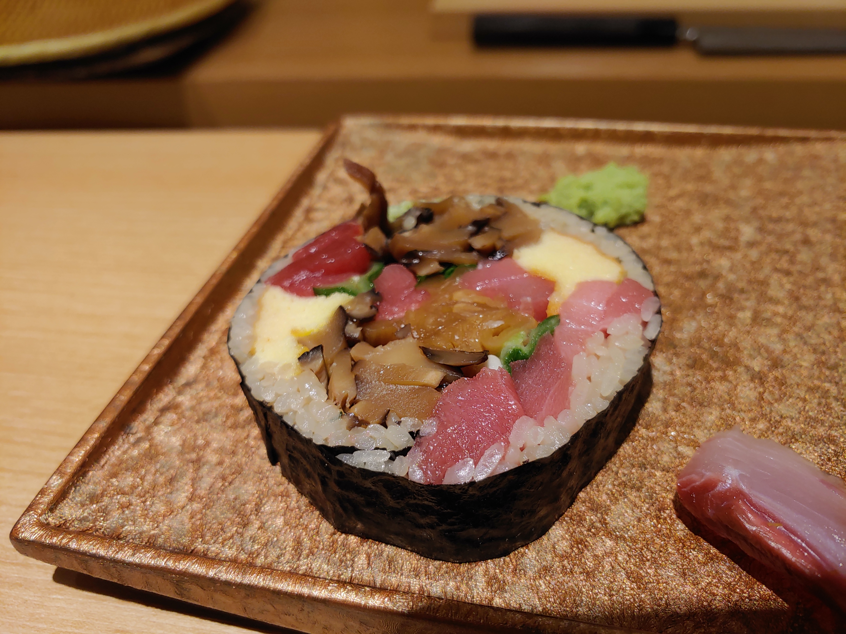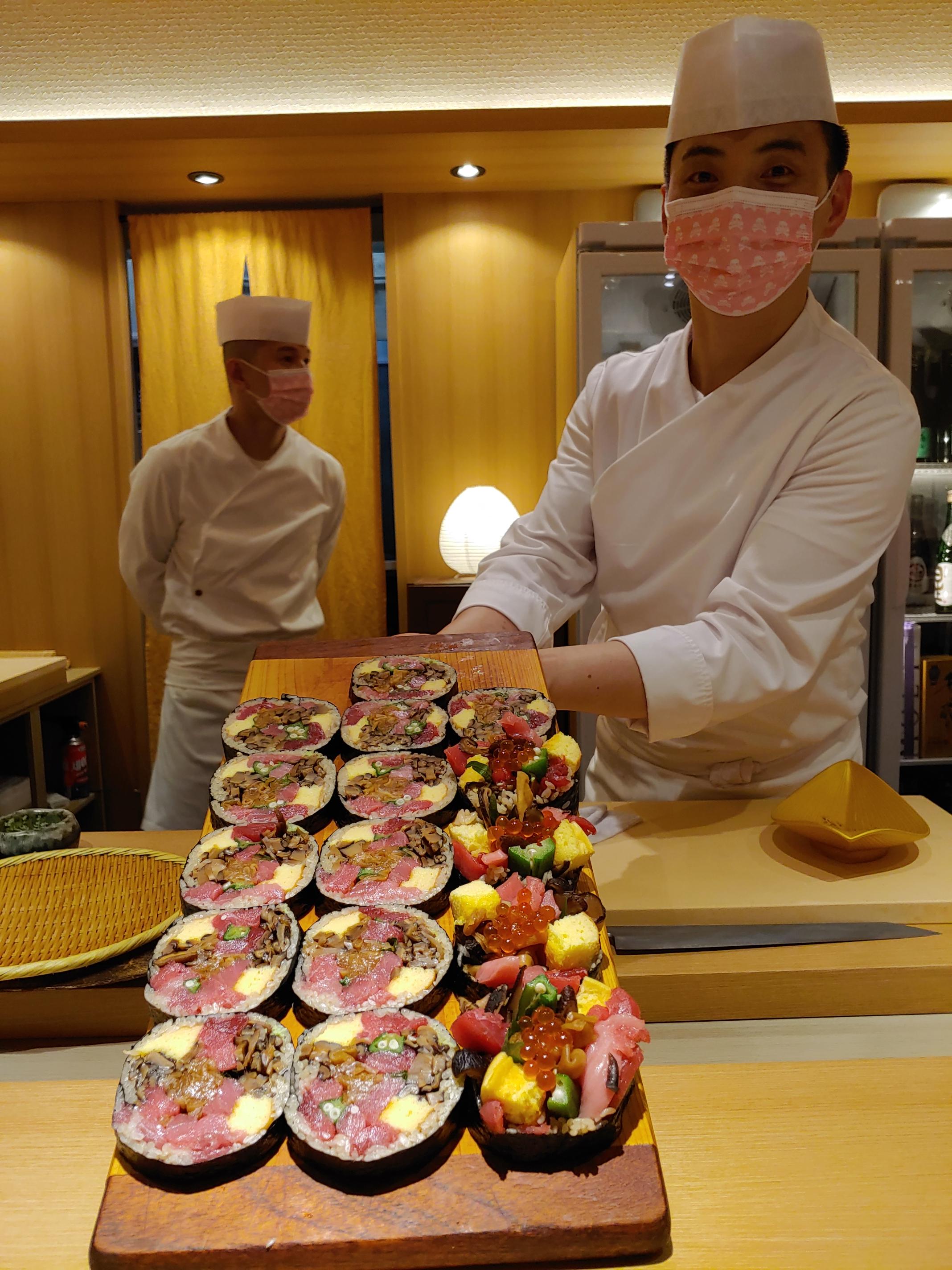 우니를 먹는데 저 멀리서 후토마키를 말고 있는 모습이 눈에 들어왔다. 내 사랑 후토마키♥ ...그런데 사이즈가 좀 크다.