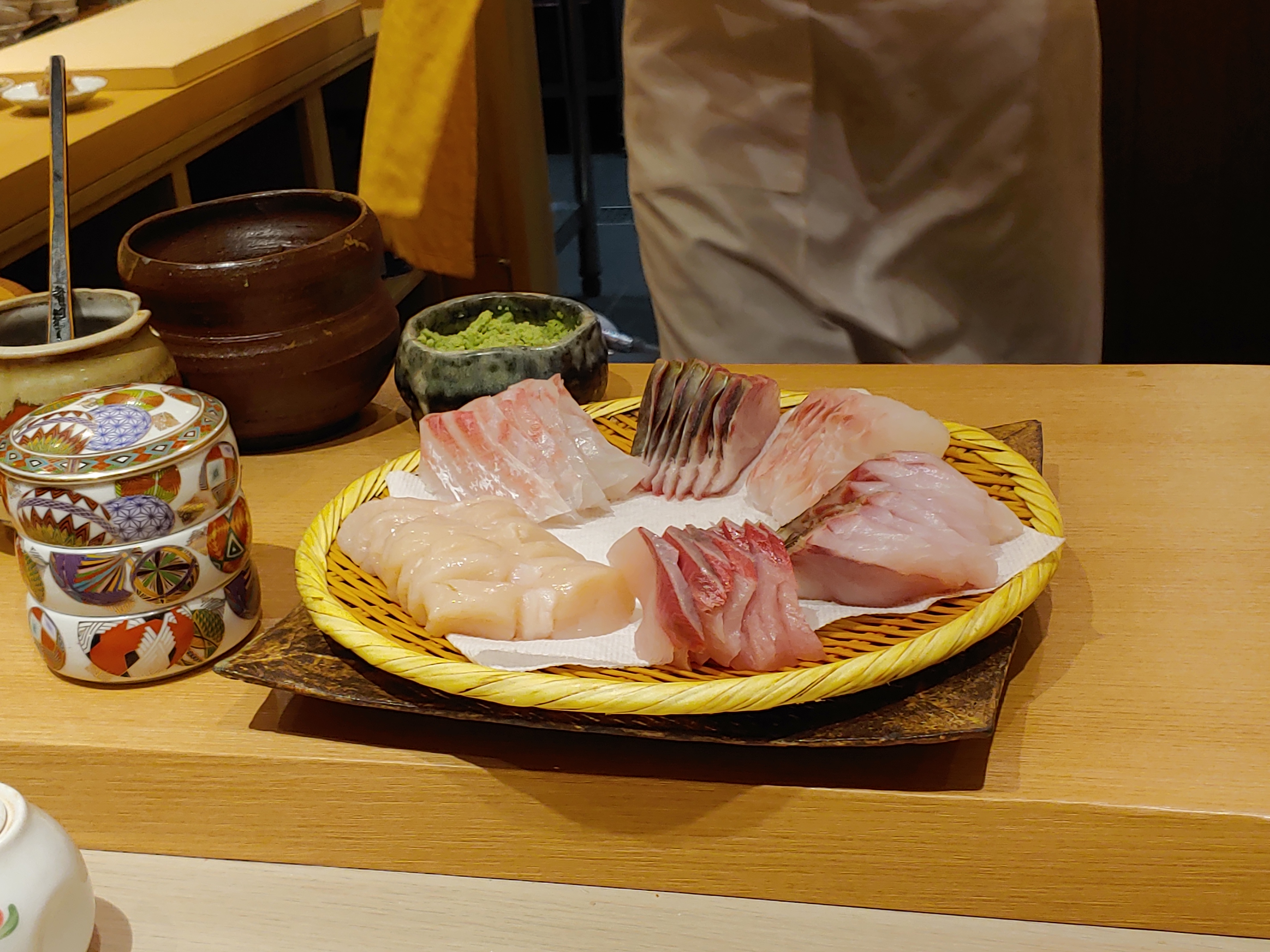 준비된 네타용 생선들. 생선 종류가 많지 않은 대신 다른 요리들이 많았고, 구성도 맛도 상당히 좋았다.
