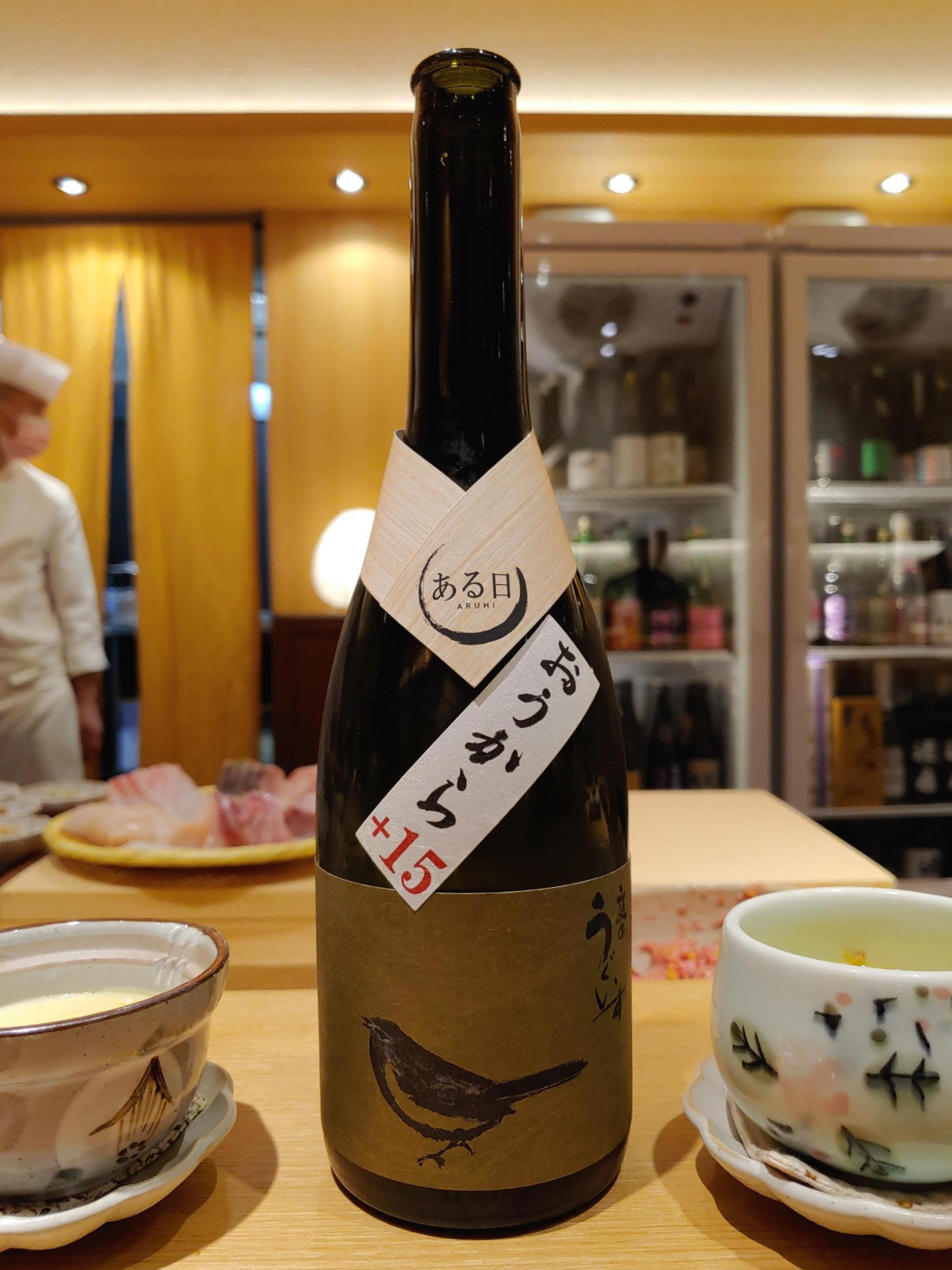 두 종류의 사케를 추천해 주셨는데 레이블의 그려진 새가 마음에 들었던 이 보틀을 골랐다.