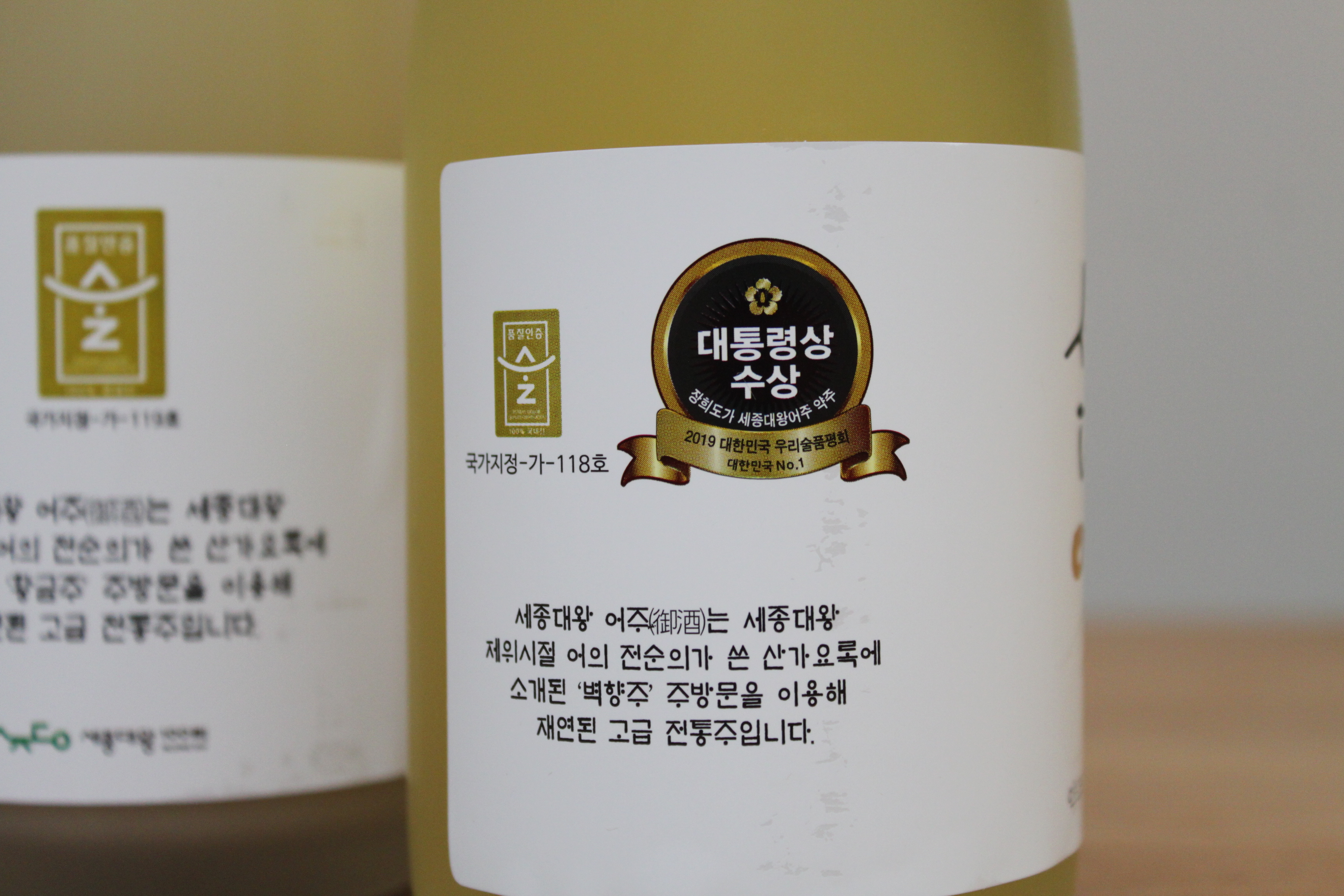 게다가 세종대왕 어주는 세종대왕님이 눈병 치료를 위해 방문한 곳으로 알려진 초정리에서 세계 3대 광천수로 유명한 맑은 물로 담는 술입니다. 주재료인 쌀 또한 마을 농민들이 직접 재배한 유기농 쌀만을 사용한다고 하네요. 첨가물은 전혀 사용하지 않는다고 합니다.