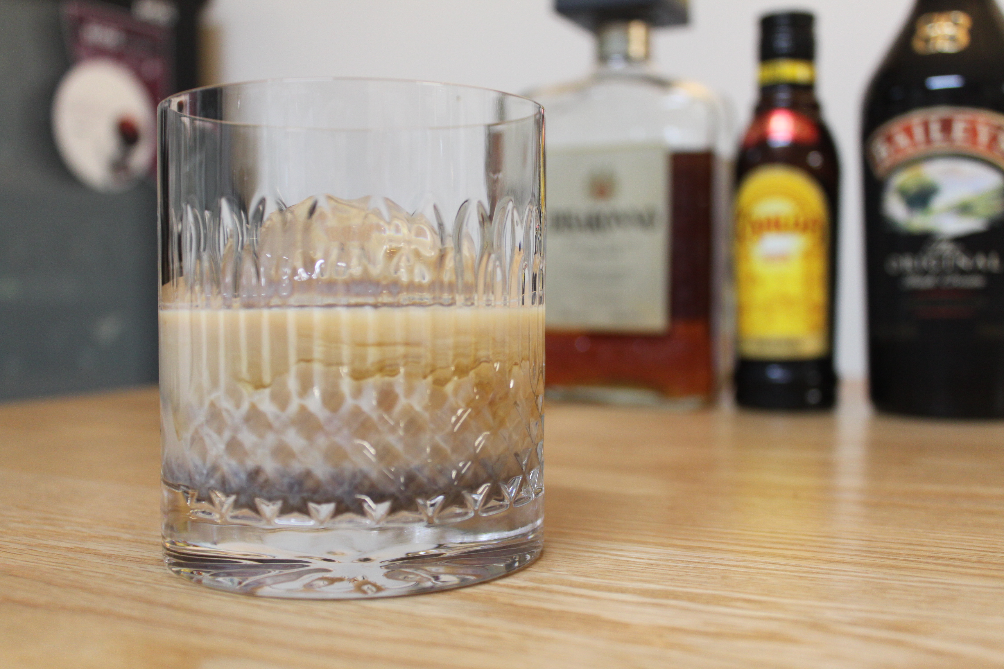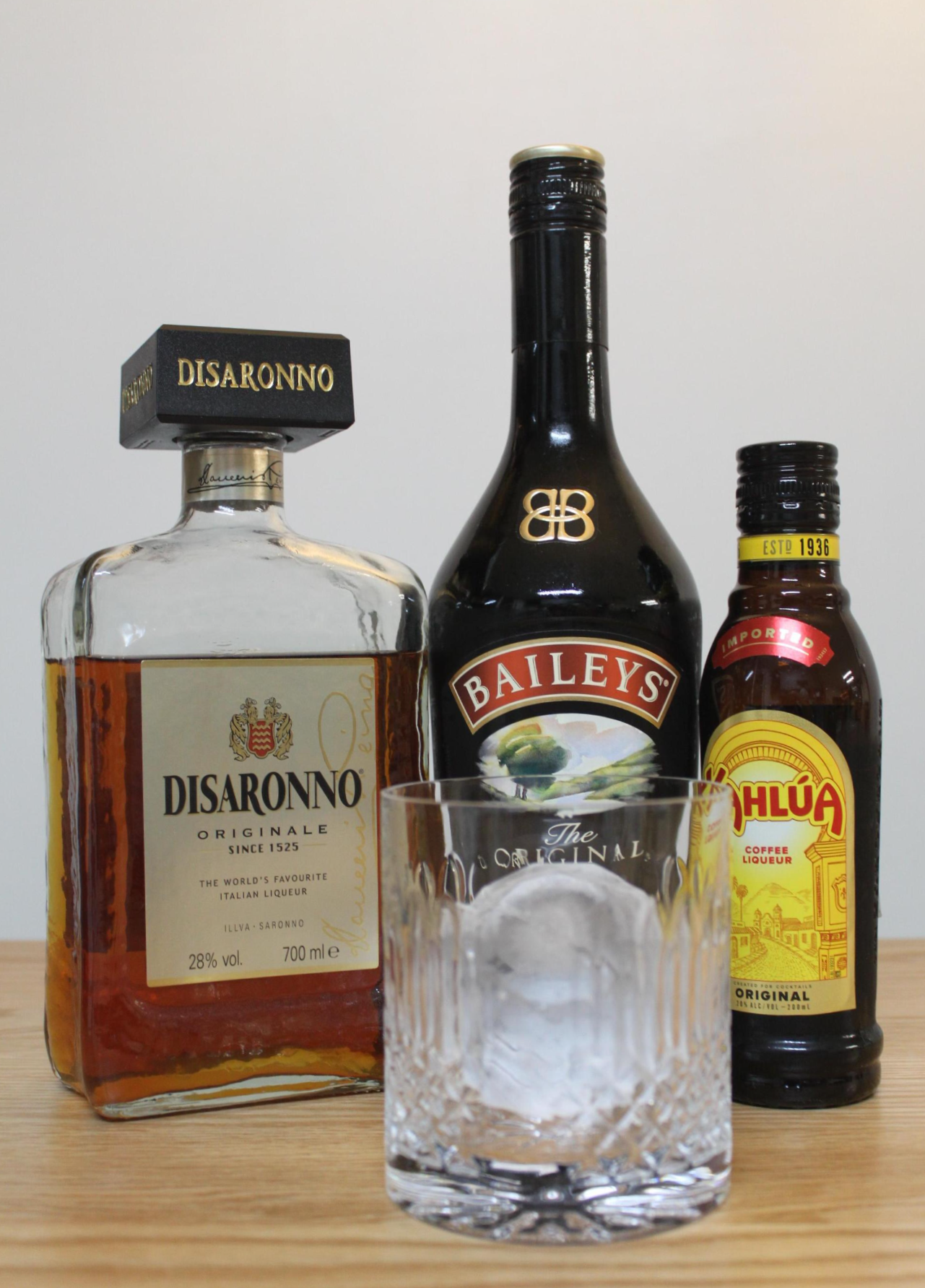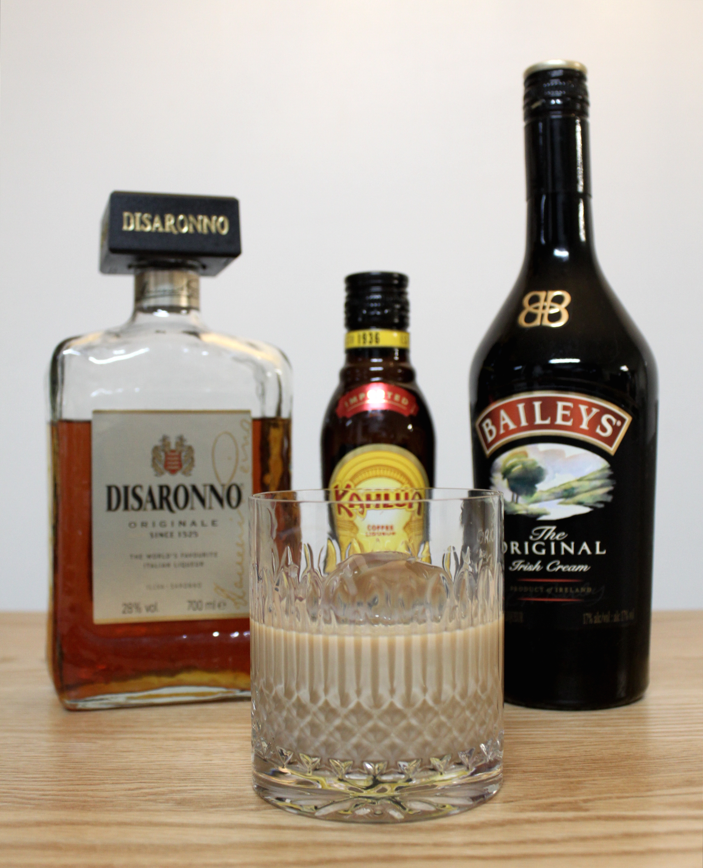 어쨌거나 나는 얼음을 넣은 온 더 락 잔에 칼루아(Kahlua), 베일리스(Bailly's), 디사론노(Disaronno)를 각각 1 파트씩 넣는 가장 표준적인 레시피를 사용했다. 레시피만 봐도 얼마나 들큼할지... 하지만 이 칵테일을 만들기로 결심한 데는, 세 가지 재료가 내가 가장 사용하지 않는 리큐르들이기 때문이다. 이럴 때나 생사를 확인해야지 언제 또 확인하겠노.