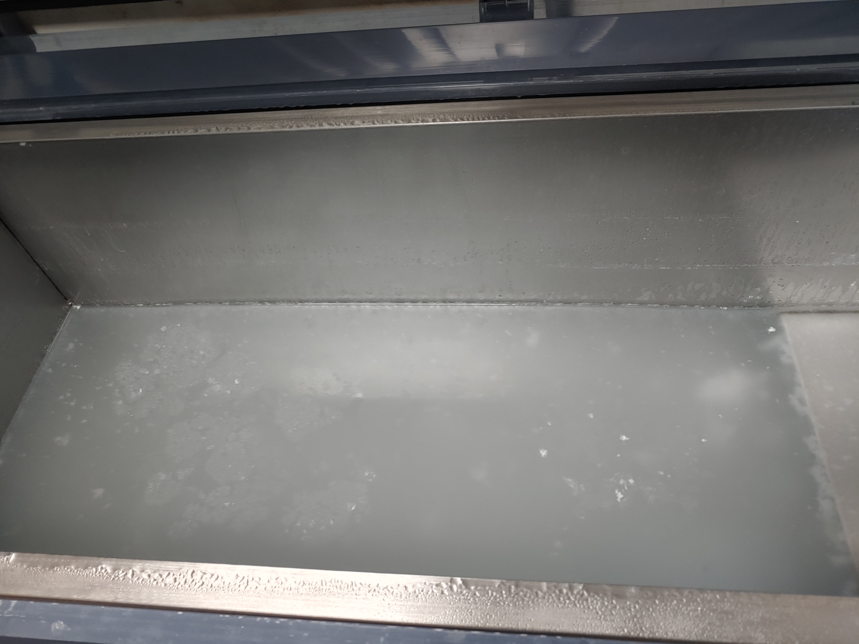 냉동 여과를 위한 냉장고. 영하 25도 이하로 온도를 내리면 저렇게 뿌옇게 백탁 현상이 일어난다.