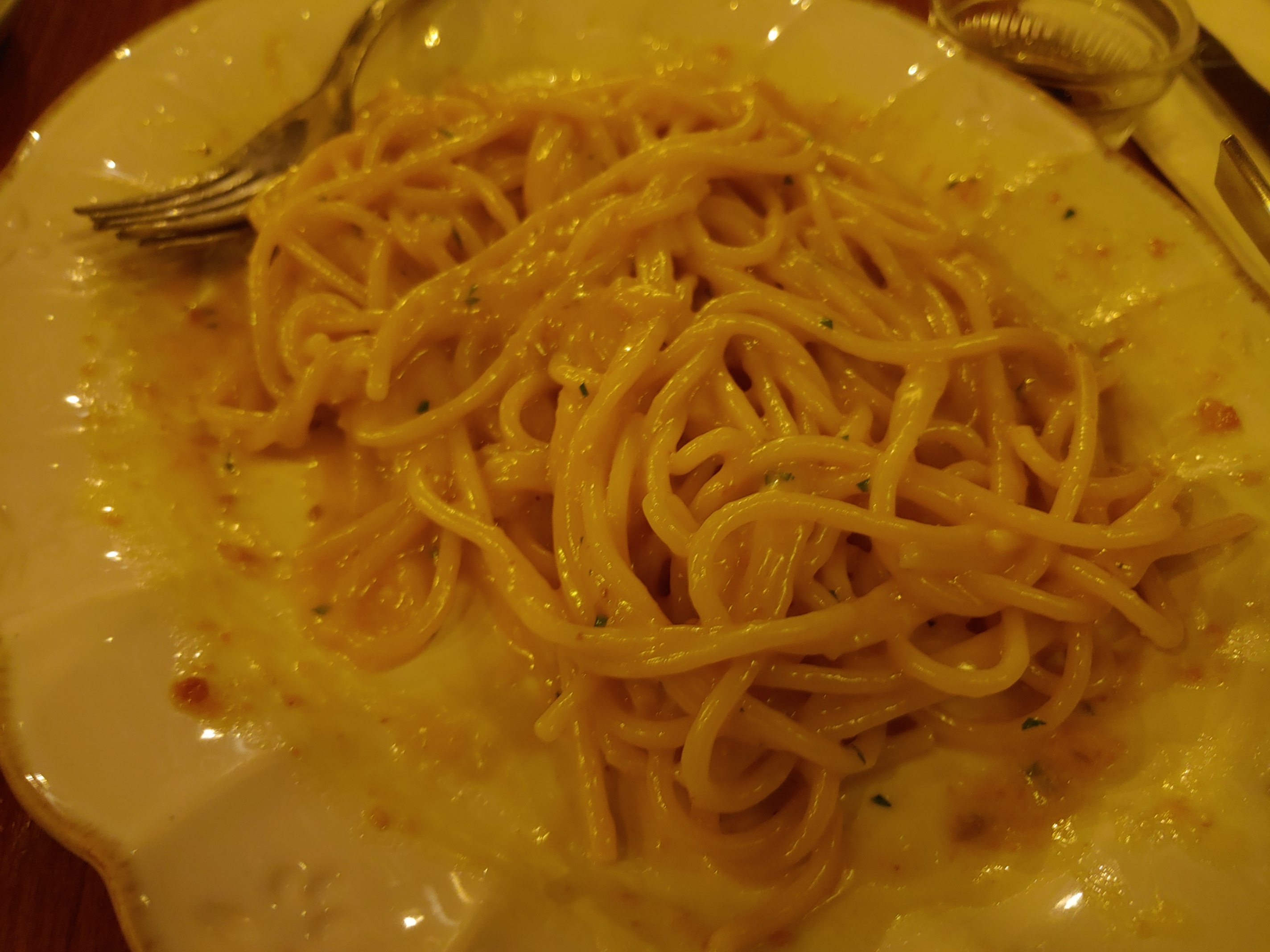 어란 파스타. 유일한 실패작이다. 맛이 없는 게 아니다. 오히려 맛은 좋은데 와인이랑 충돌이 난다. 심지어 루아르 크레망을 마셔도 비린 맛이 부각될 지경. 와인을 마신다면 이 파스타는 피하는 게 좋겠다.