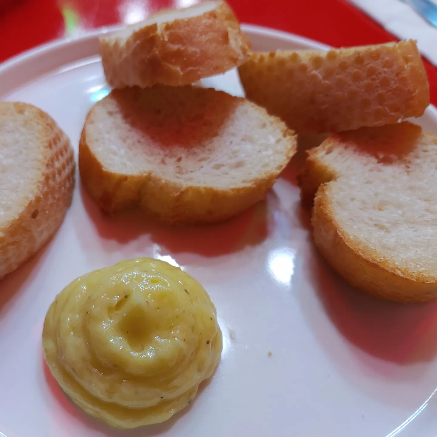 식전빵조차 나이롱스럽다. 소스도 시판 제품 같았는데 오묘하게 맛있다 ㅋㅋㅋㅋ 본격적으로 음식이 나오길 기다리며 일단 내가 가져온 화이트 와인부터.