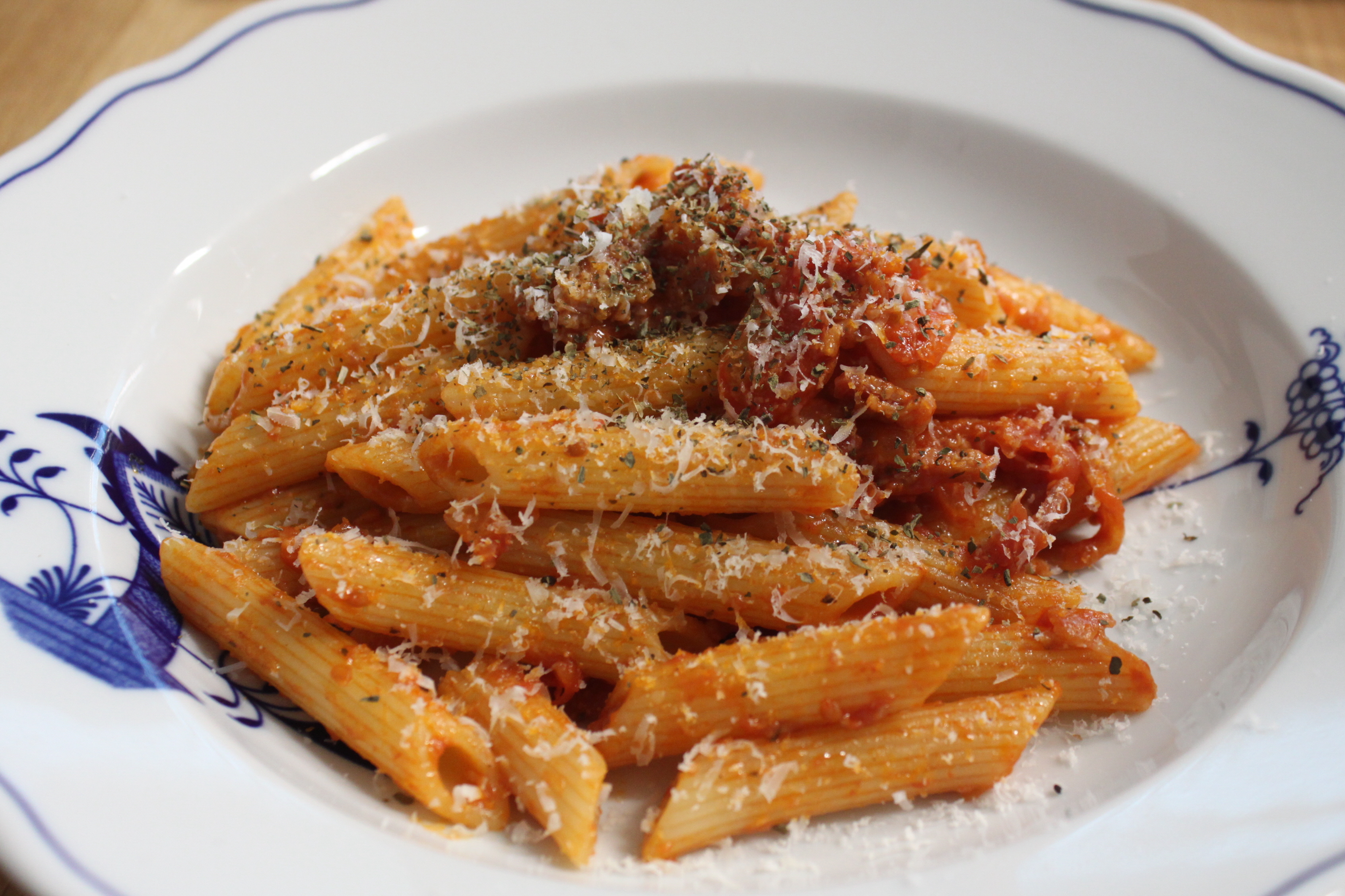 둘째 날 점심은 토마토 베이컨 펜네 파스타와,