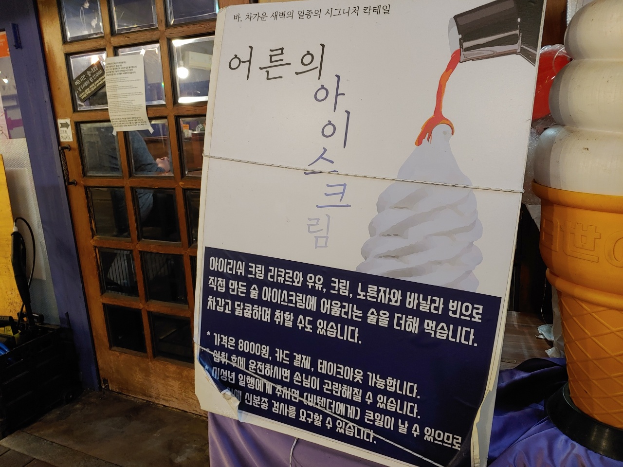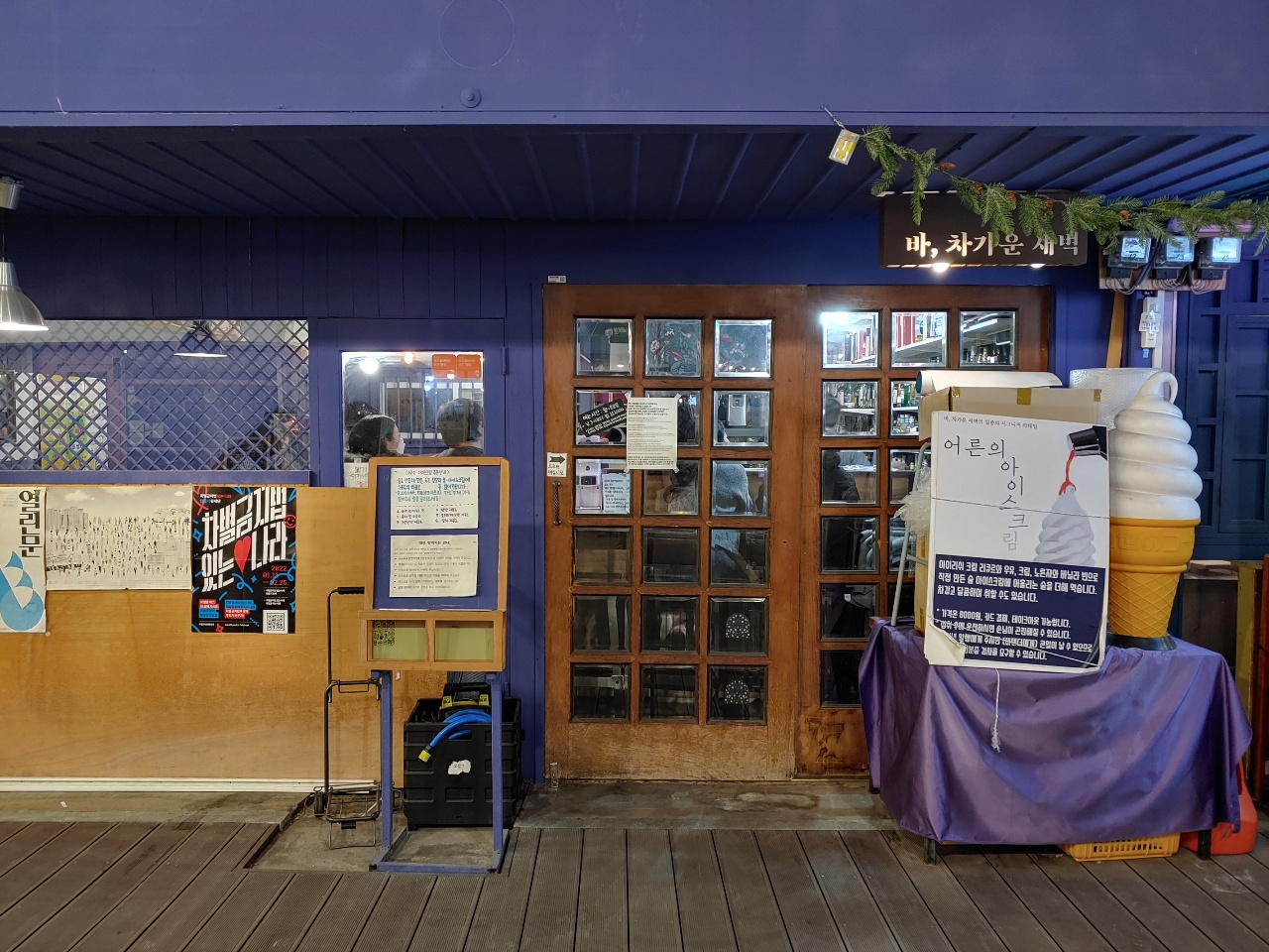 나의 목적지는 '바, 차가운 새벽'. 이름도 컨셉도 마음에 들어서 선택한 곳이다. 그런데 저 이름, 시장이라는 공간과도 참 어울리는 것 같다.