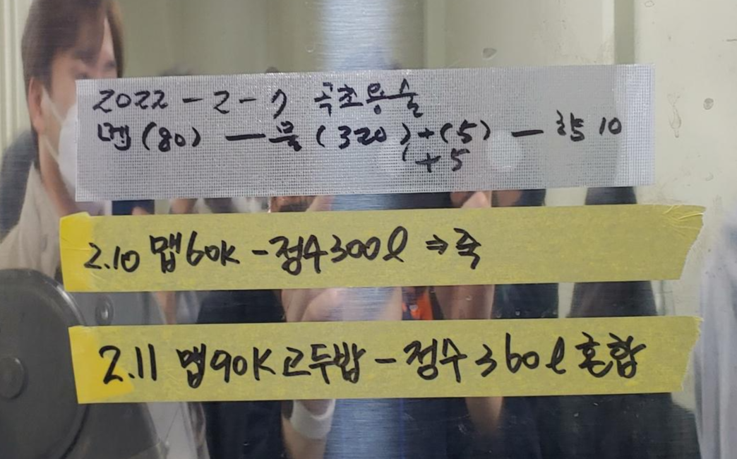 큰 통 2톤 분량이다. 실내 온도는 연중 섭씨 22도로 유지한다. 냉각기가 없지만 교반만 잘해줘도 20도를 넘지 않는다고.