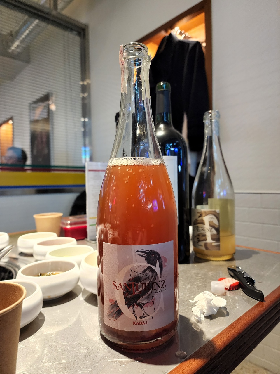'코르부스'는 까마귀라는 뜻. 붉은 체리 컬러가 상당히 마음에 드는데, 컬러와 어울리는 붉은 베리와 라즈베리 향이 힘찬 버블을 타고 화사하게 피어난다. 입에서는 역시나 거친 버블감. 과일 풍미와 함께 약간의 토양 힌트와 세이버리함이 드러나는 듯하다. 알코올 함량을 확인하지 못했는데 이것도 도수가 제법 높을 것 같다.