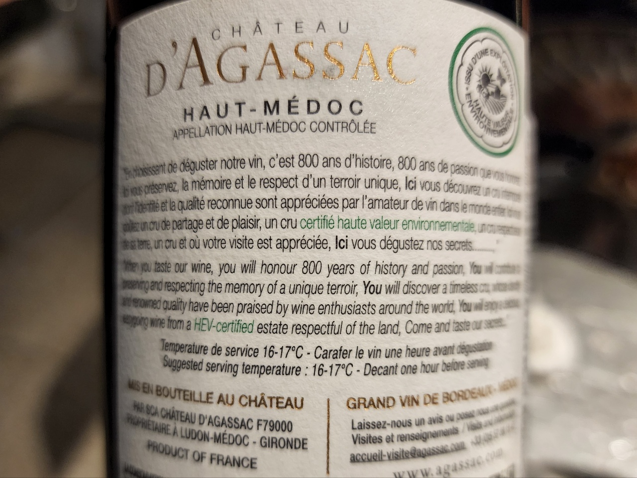 정말 오래전에 마시는 샤토 다가삭(Château d’Agassac).