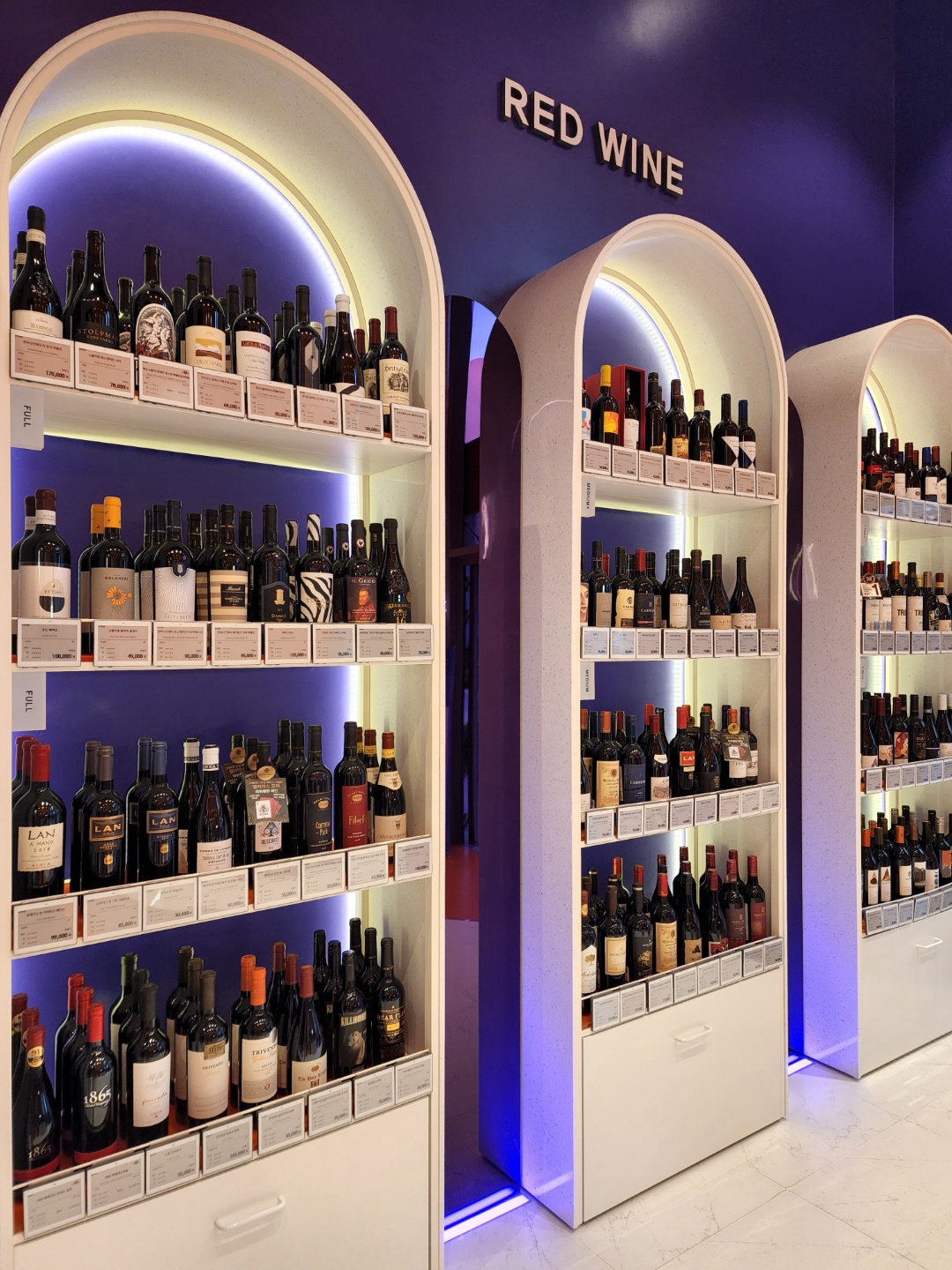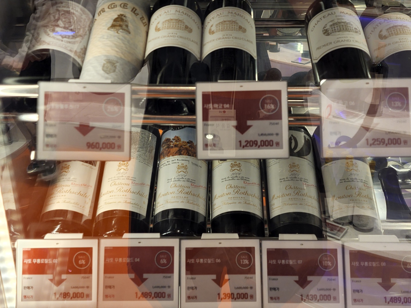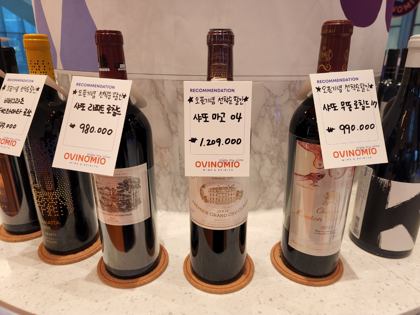 주목할 포인트는 시음이 가능한 부스를 마련해 두었다는 것. 간단히 회원 가입을 하면 다양한 무료로 시음할 수 있다. 레드 와인이 담겨있던 요 기기는 아직 작동이 안 되고 있어서 시음은 못 해 봤다. 구매 실적에 따라 VIP가 되면 특별한 와인도 시음할 수 있는데, 맨 좌측에 들어있는 와인은 샤토 무통 로칠드.... VIP 되고 싶다;;;