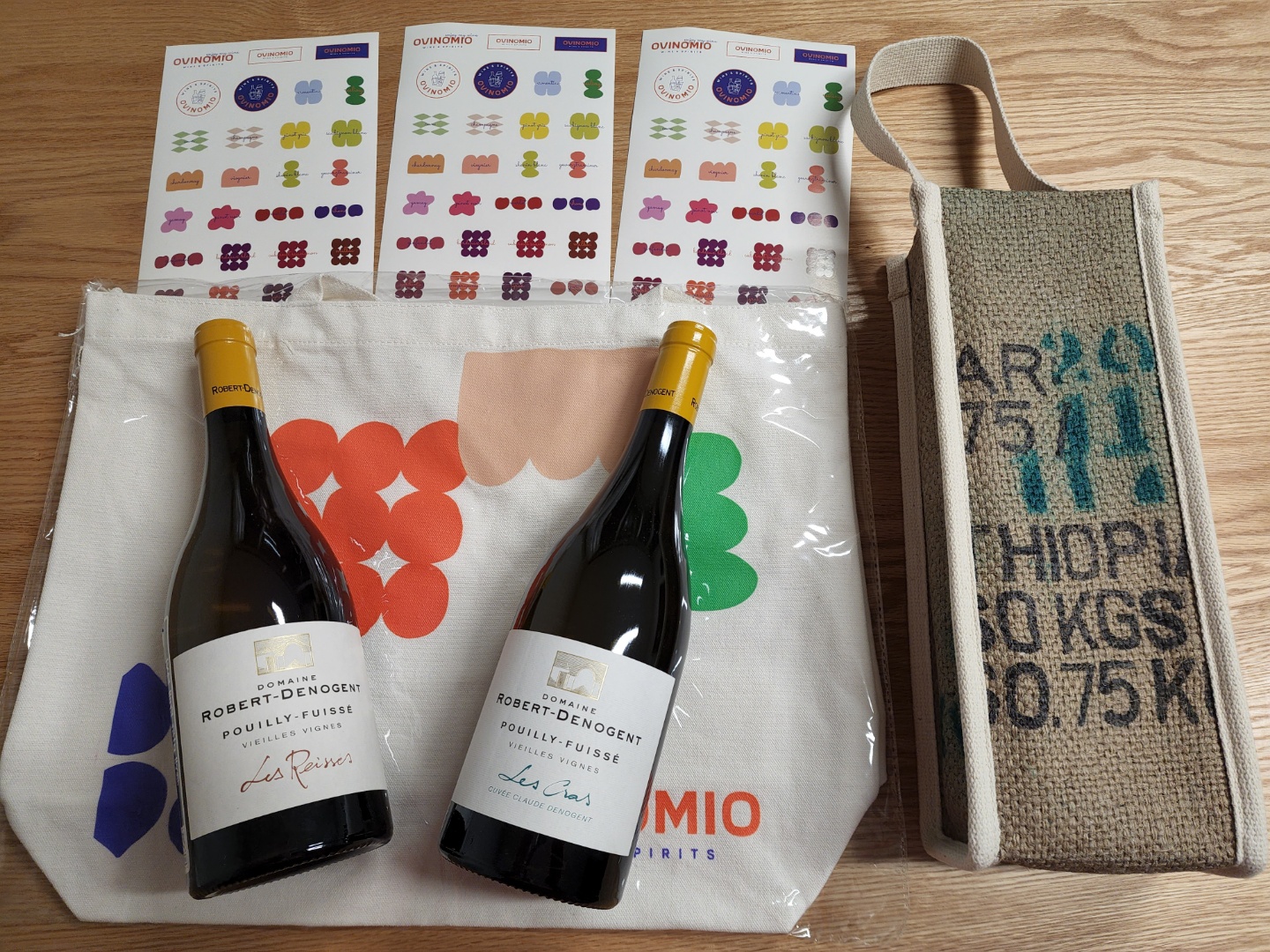 그리하여 이날의 전리품. 드노정 두 병과 에코백, 그리고 10만 원 이상 구매 고객에게 증정하는 업사이클링 와인 백.