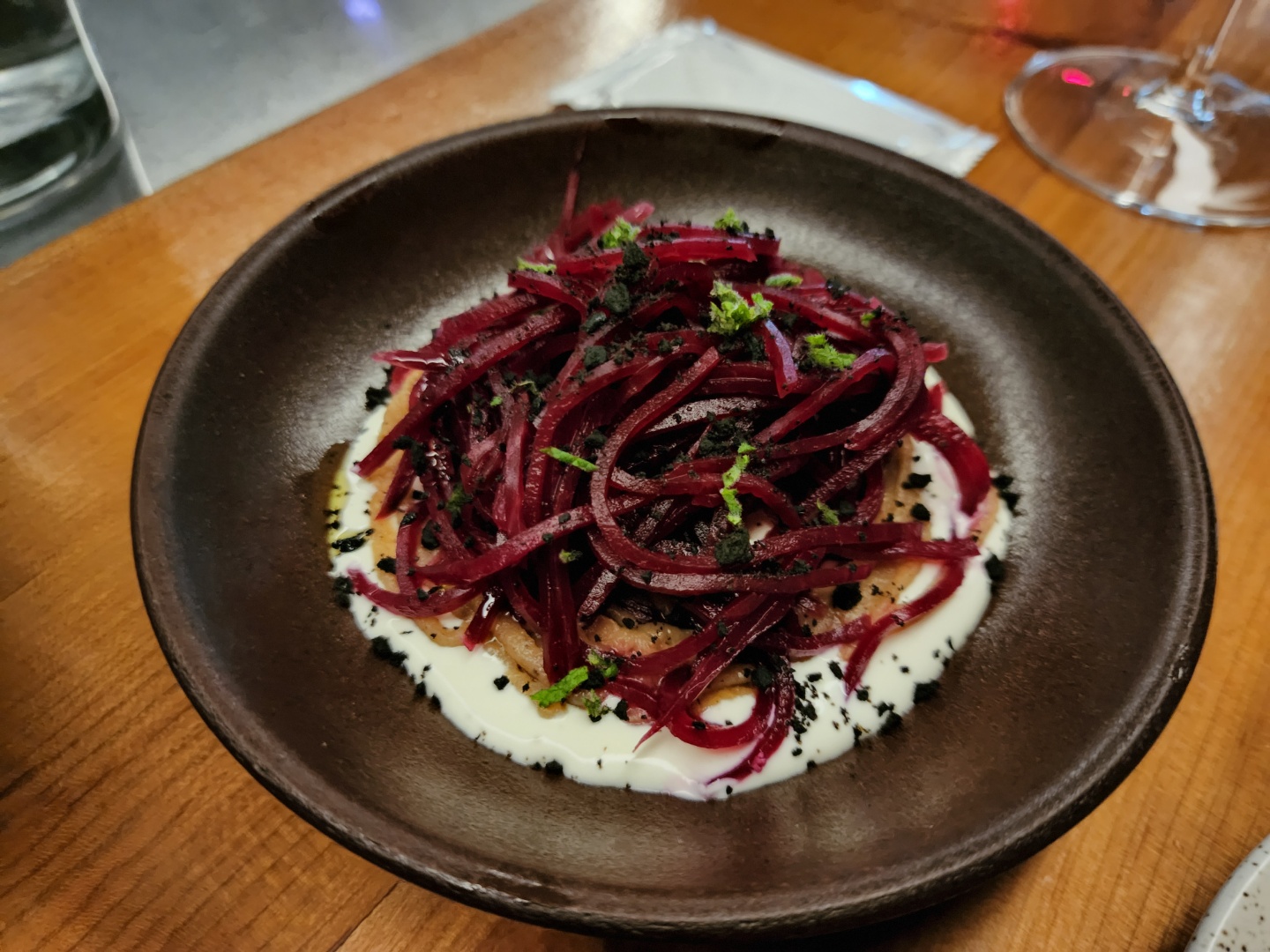 와인을 고를 땐 원하는 취향을 얘기하면 여러 병을 제안해 주는데, 소믈리에님이 상당히 상세하고 알아듣기 쉽게 설명해 주신다. 리스트도 상당히 충실한 편. 대략 8만 원대~수십만 원대의 와인까지 다양하다. 대충 훑어봤지만 특히 펫낫/스파클링/화이트 리스트가 좋았던 듯.