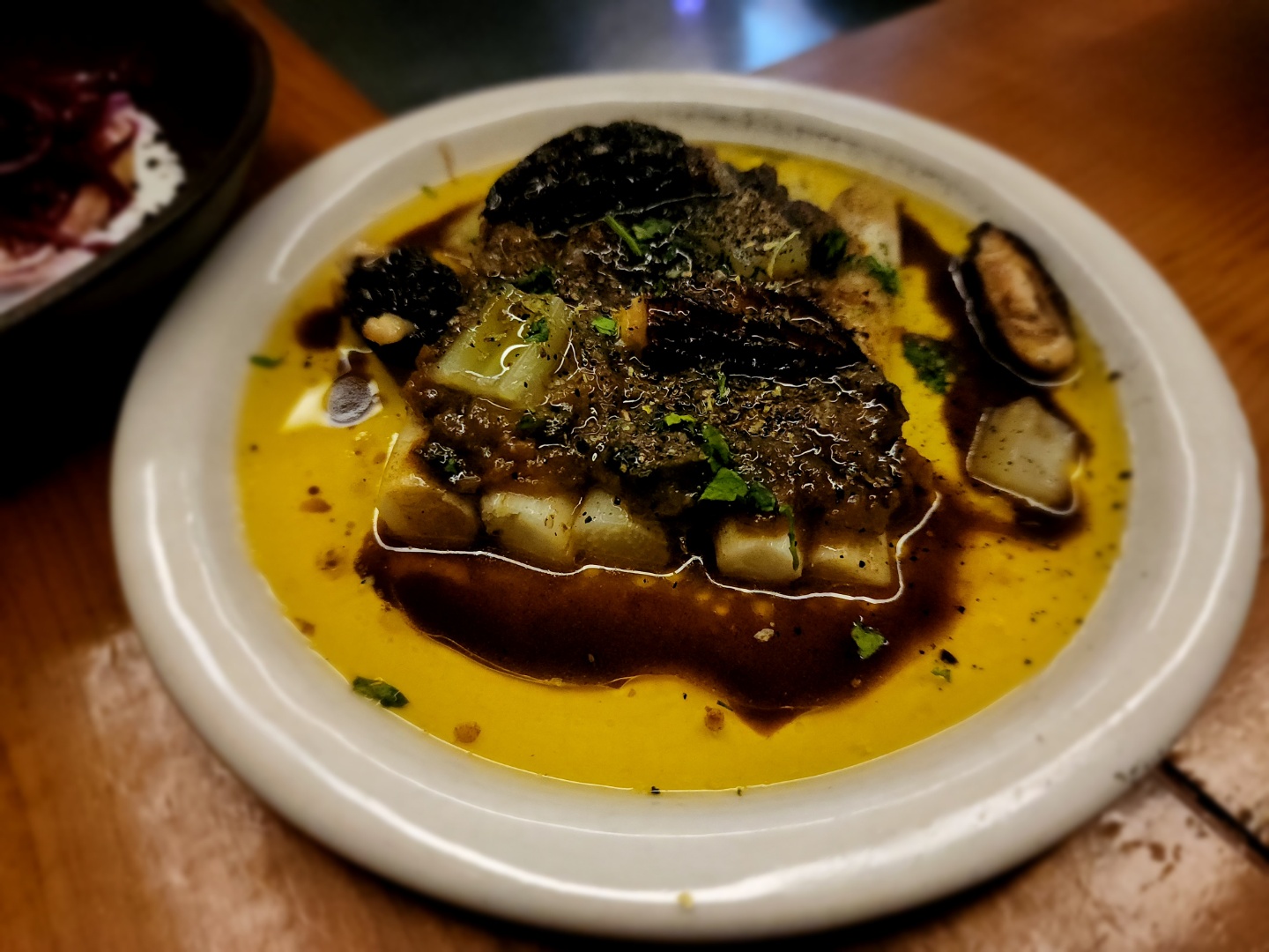 나의 원픽, 양고기 만두, 위에 올라앉은 당근과 쯔란이 킥. 따로 먹어도, 곁들여 먹어도 맛있다. 만두소에 쫄깃한 고기와 오돌뼈처럼 오돌오돌한 뭔가가 섞여 있어서 아주 재미있다. 이것도 역시 혼자서 한 판 먹어야 직성이 풀릴 만한 맛. 양도 그렇고.....