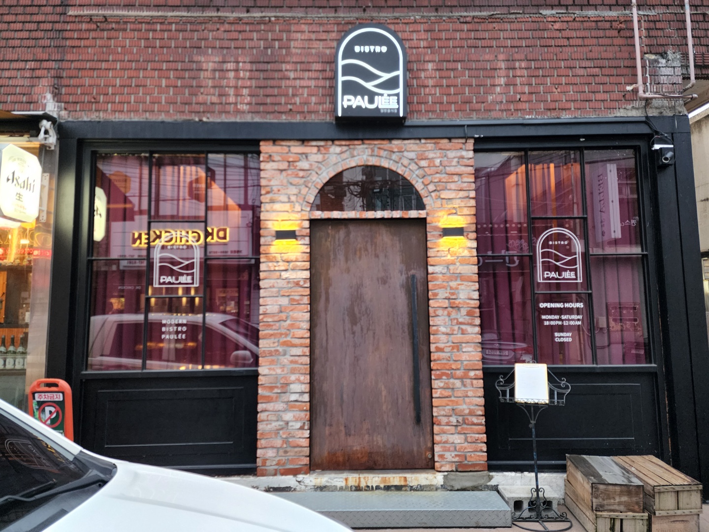 제주시 연동에 위치한 와인바, 폴레(Paulée). 근처는 상당히 번잡한 편인데, 와인바의 외관은 포스가 넘친다.