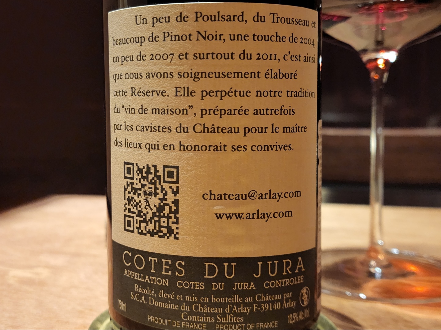 빈티지가 쓰여 있지 않아서 이상하다 했는데 2011년을 중심으로 2004년, 2007년 빈티지를 혼합했다. 사용한 품종 또한 피노 누아(Pinot Noir)를 메인으로 풀사르(Poulsard)와 트루소(Trousseau) 같은 쥐라 토착 품종들을 블렌딩 했다. 과거에 샤토 오너를 위한 하우스 와인의 전통에 기반해 만든 와인이라고. 숙성할 필요 없이 곧바로 편하게 마실 수 있는 가벼운 와인이다.