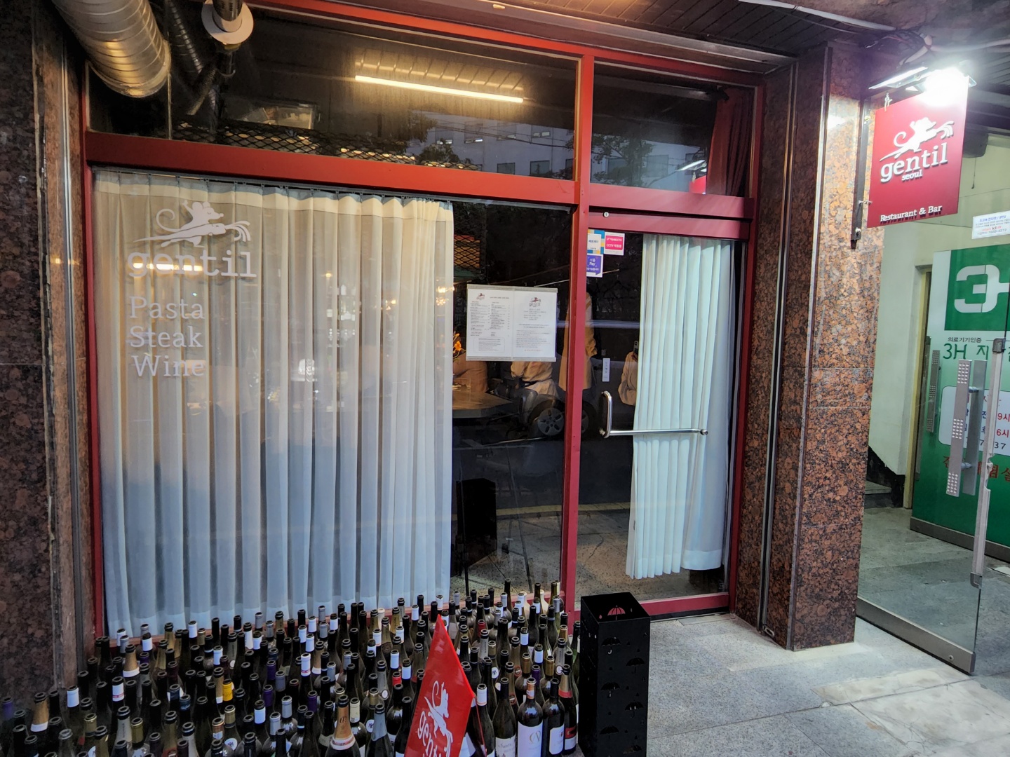 잠실새내 부근에 위치한 프렌치 기반 유러피언 비스트로 & 와인바, 정띠(Gentil). 정띠는 친절한, 상냥한, 관대한 등의 뜻이라고.