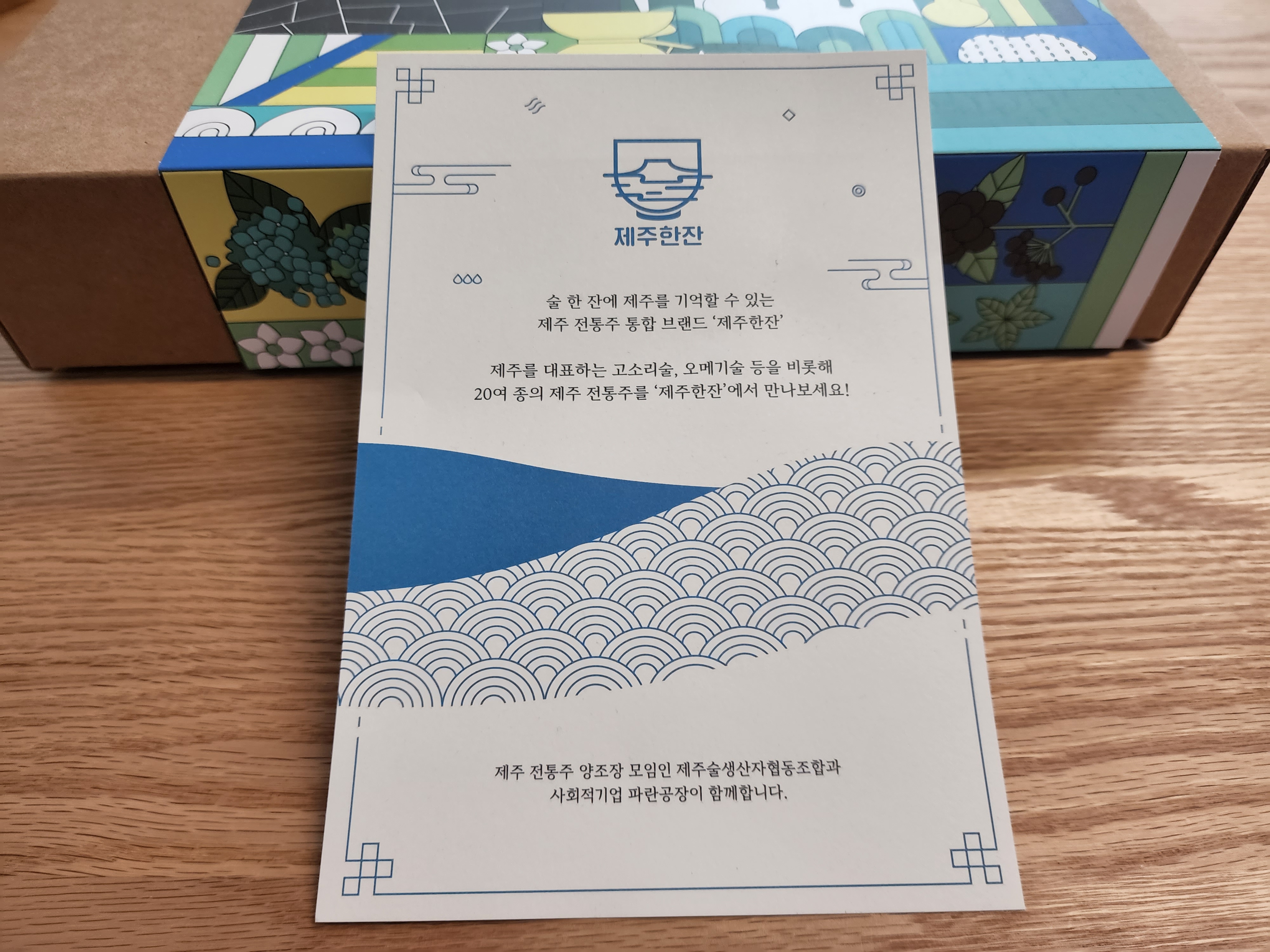 '제주한잔'은 술 한잔에 제주를 기억할 수 있도록 만든 제주 전통주 브랜드라고 한다. 제주 전통주 양조장 모임인 제주술생산자협동조합과 사회적 기업 파란공장이 함께 만들었다고.