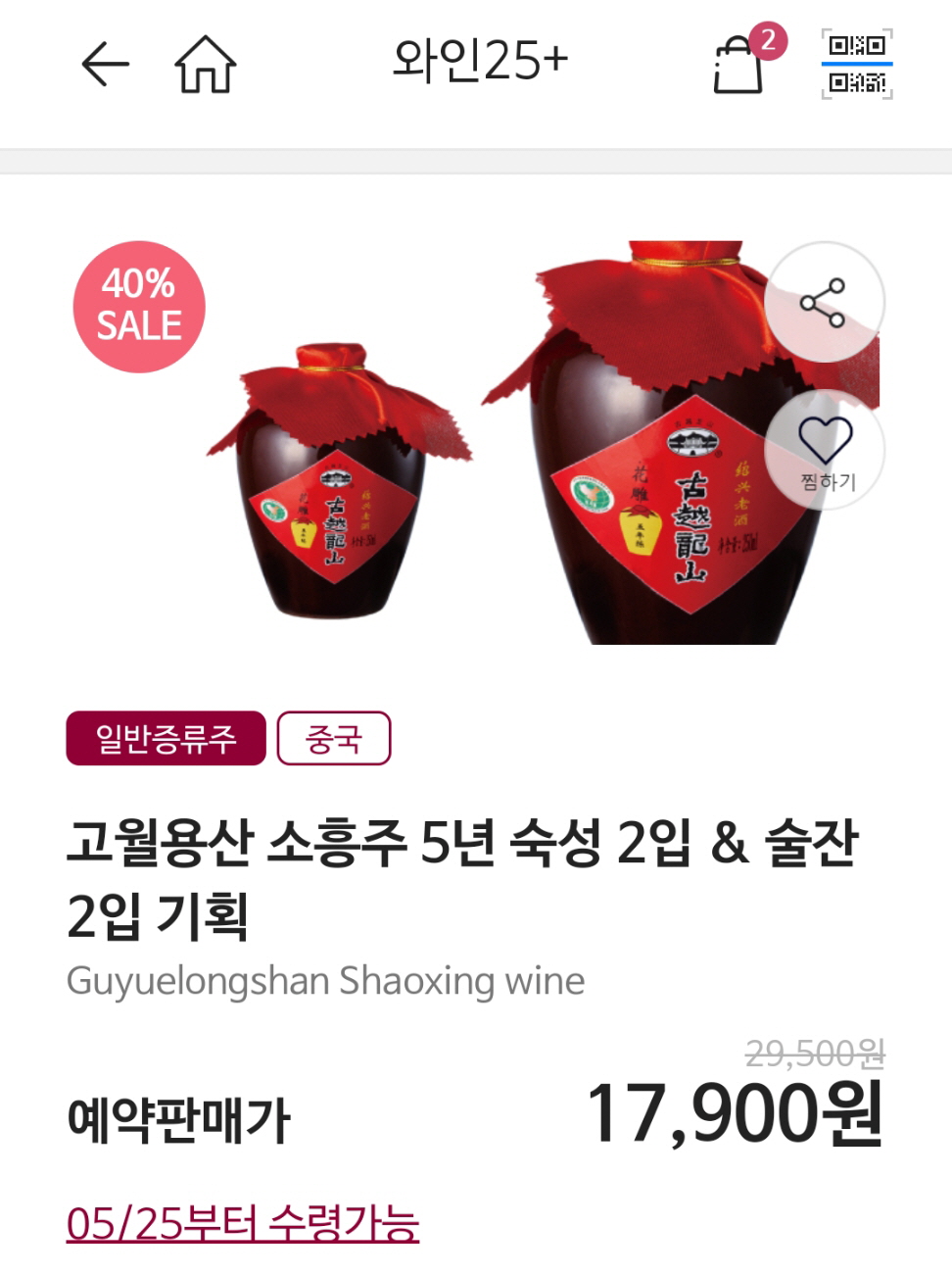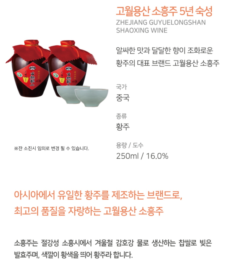 5년 숙성 2병 + 잔 2개 세트를 17900원에 팔고 있다. 잔은 다른 걸로 변경될 수 있다더니, 실제로 다른 디자인이 왔다. 뭐, 어차피 잔에는 관심이 없었으니까. 소흥주에 대한 경험이 없어서 마셔 보고 싶었을 뿐.