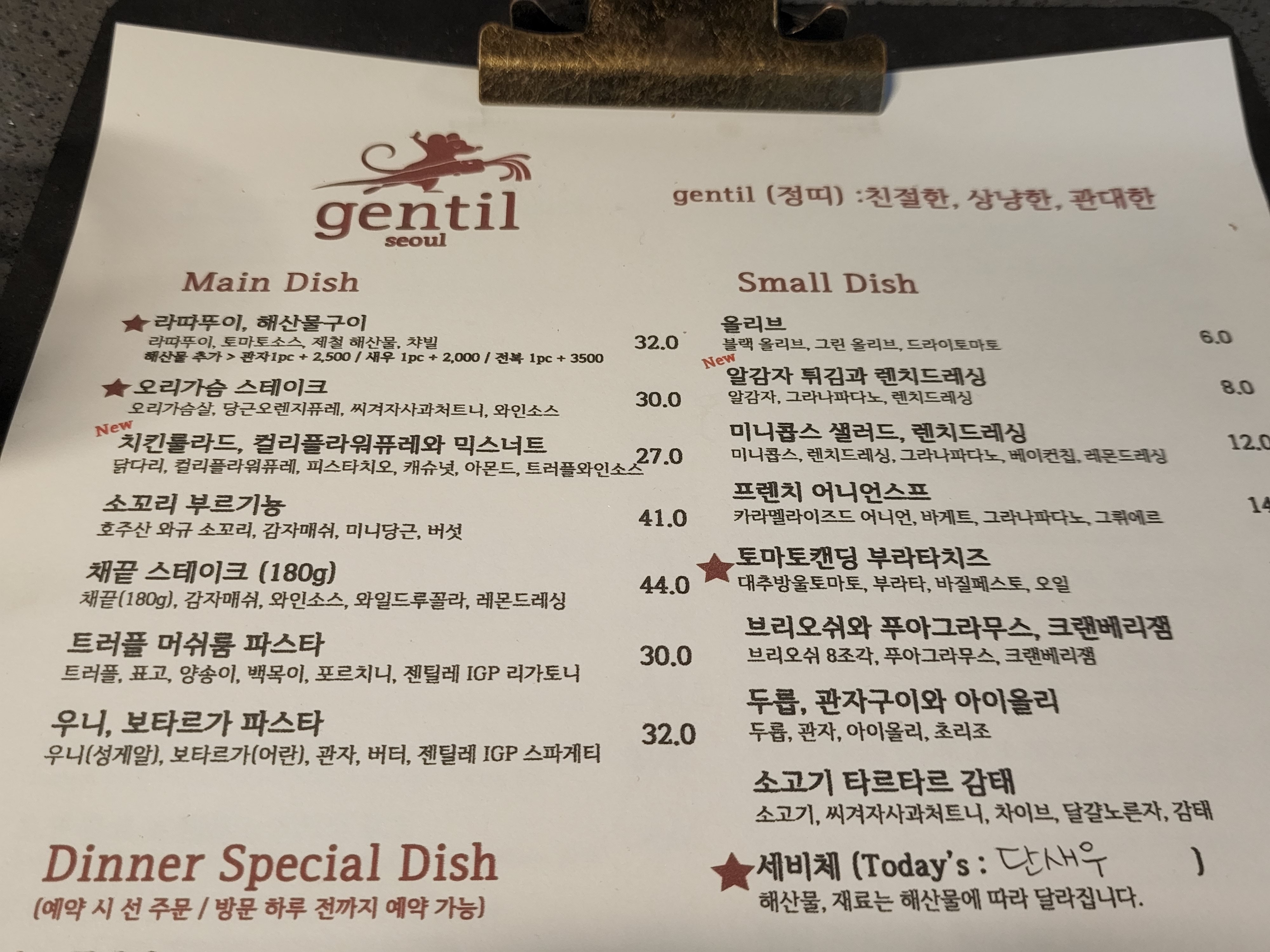 단골하고 싶은 프렌치 퓨전 비스트로 & 와인바, 정띠(Gentil)