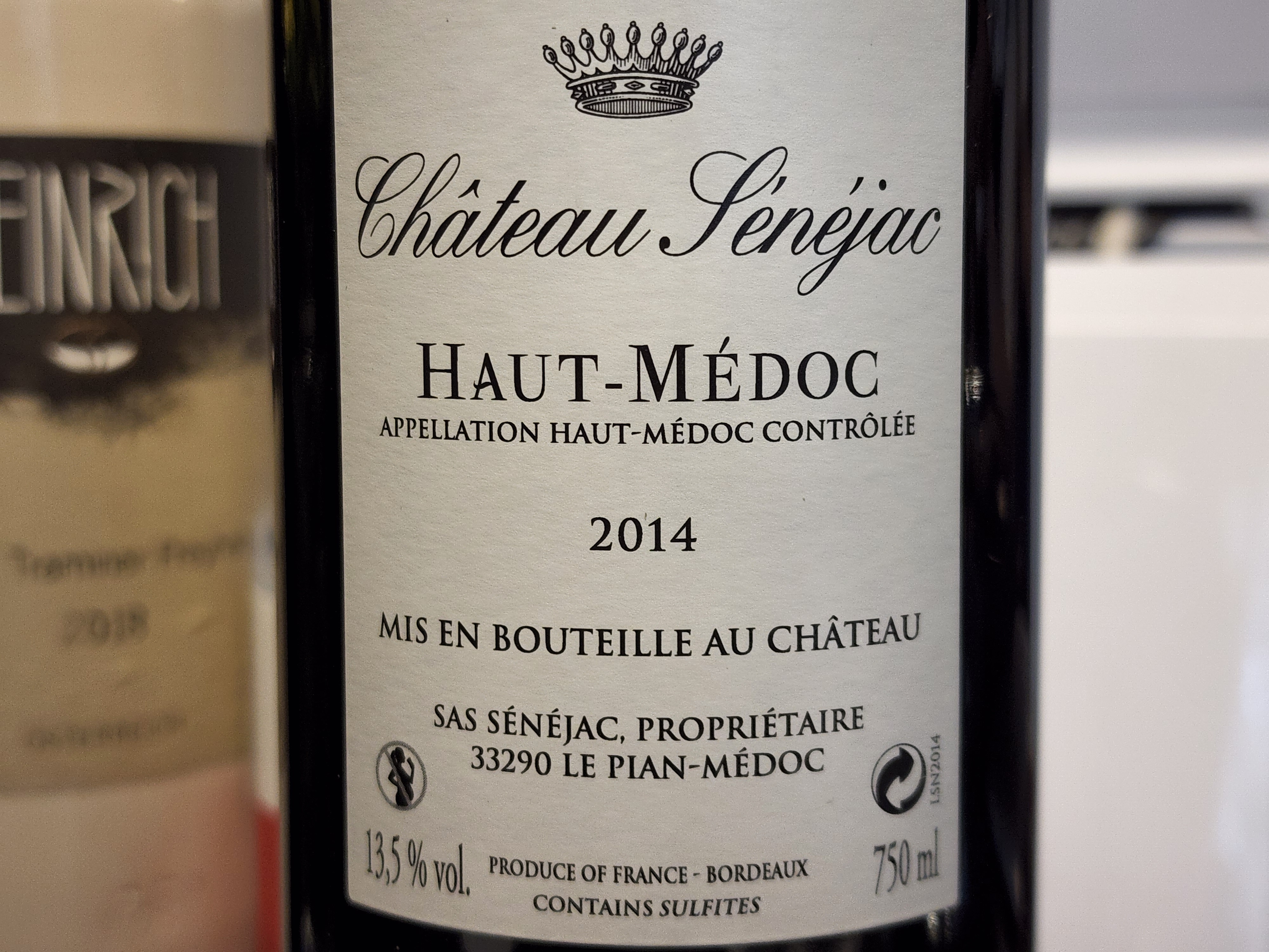 두 번째 와인은 샤토 세네작 2014. 오메독의 크뤼 브루주아(Cru Bourgeois) 와인이다.