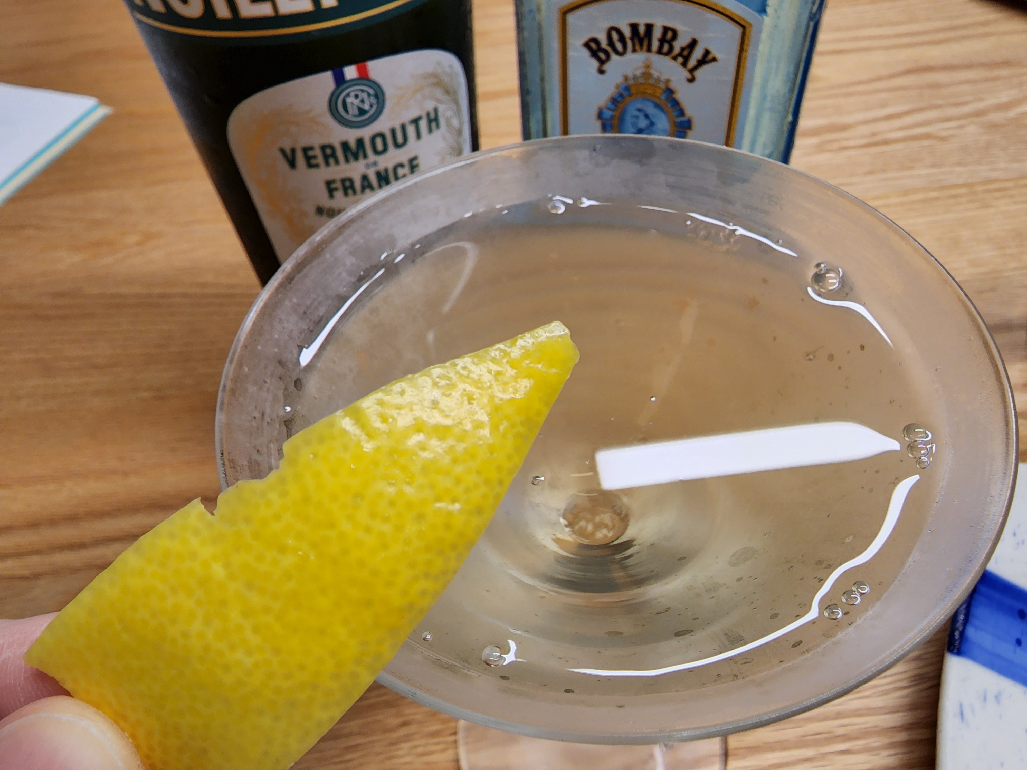 믹싱 글라스에 드라이 베르무트와 진을 각 30ml씩 넣고 스터. 칵테일 글라스에 따른 후 레몬 필 트위스트. 레몬 필을 대충 잘랐더니 모양이...ㅠㅠ