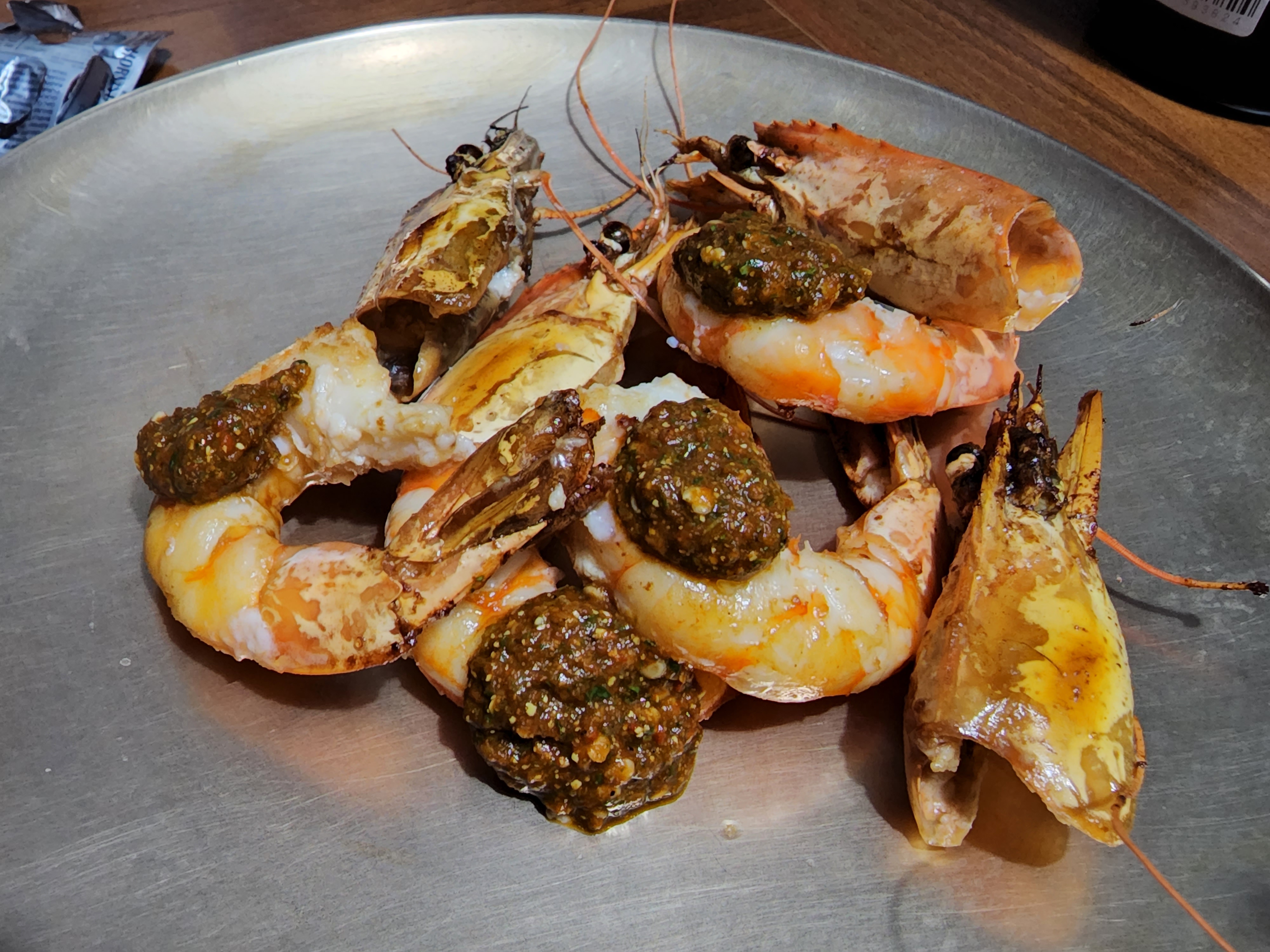 새우구이. 음... 맛은 있어 보이는데 하필 피노 누아 타임;;; 혹시나 해서 맛을 보았는데 역시나 강려크하게 충돌한다ㅠㅠ