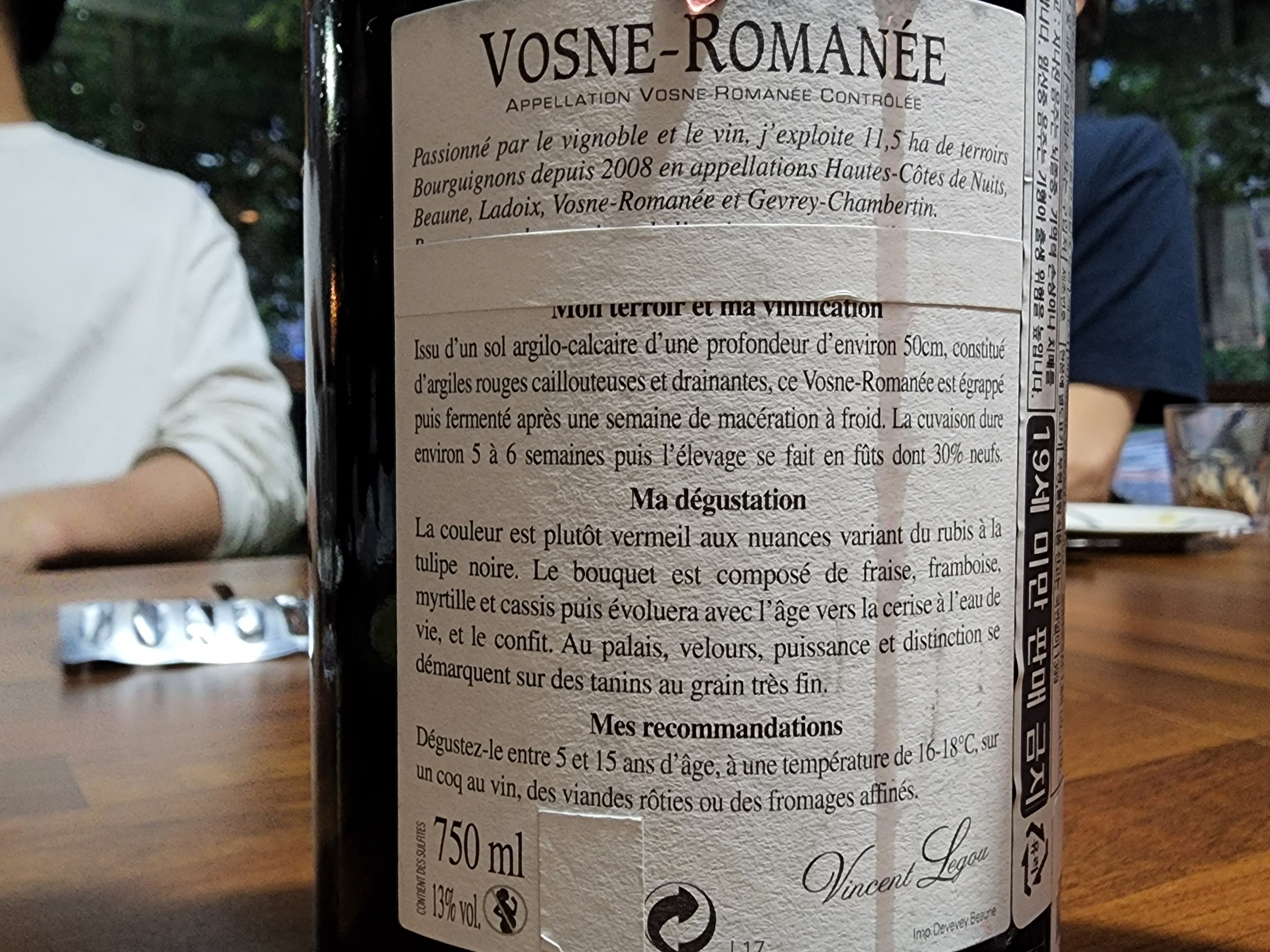 뱅상 르구의 본 로마네는 처음 마셔보는데 참 향긋하고 좋았다. Beaune은 상당히 닫힌 느낌에 딱딱해서 마시기가 힘들었는데 본 로마네는 처음부터 막 화사하게 피어났달까. 좋은 오크의 향긋한 내음에 잔잔한 허브, 검붉은 스파이스, 농가 뉘앙스의 조화. 살짝 심플하다는 생각이 들긴 했지만 오늘 같은 날은 그런 점마저 미덕처럼 느껴졌달까.