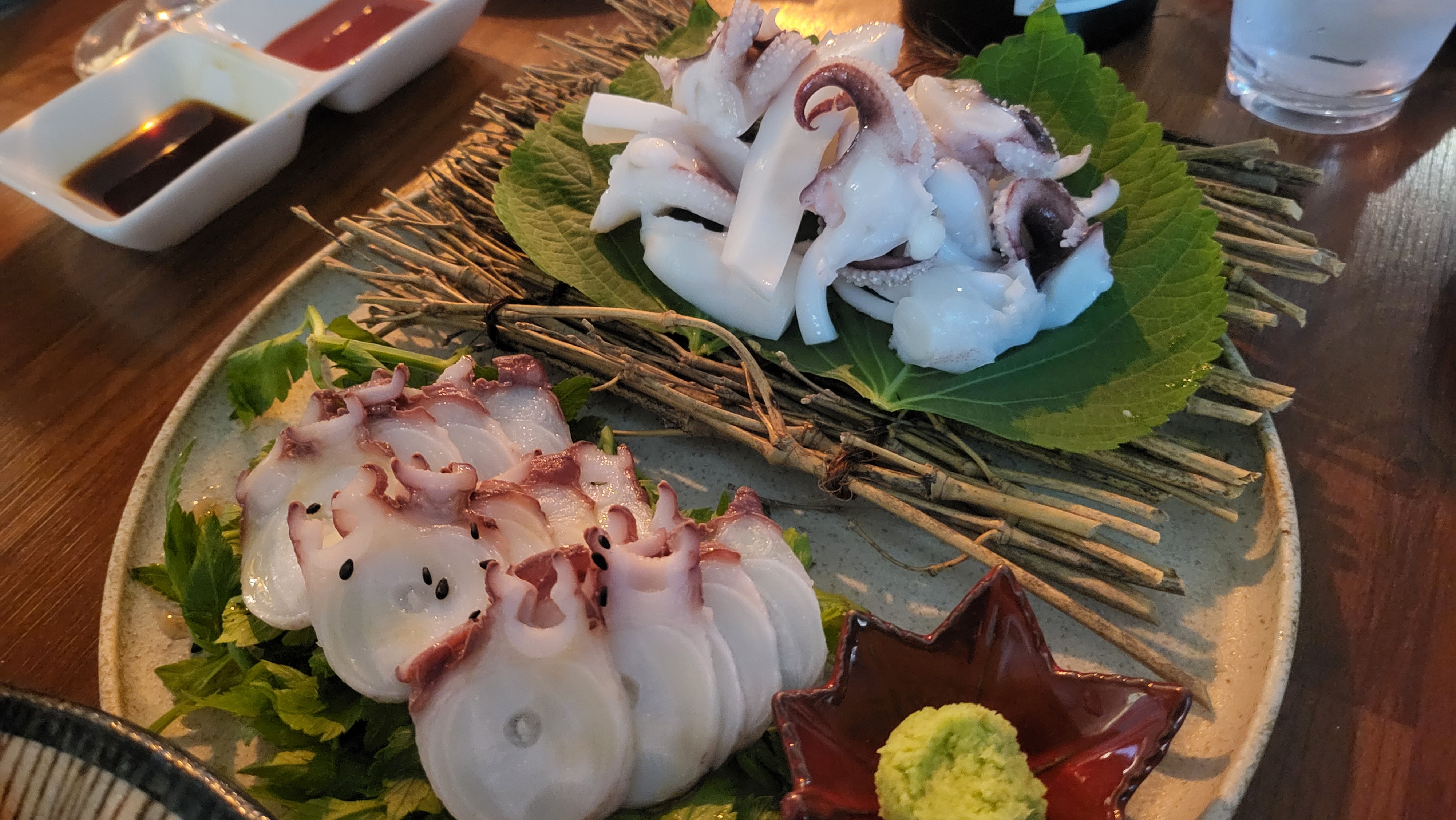 갑오징어와 문어숙회. 이야, 이건 완전 와인 도둑. 둘 다 대존맛이다.