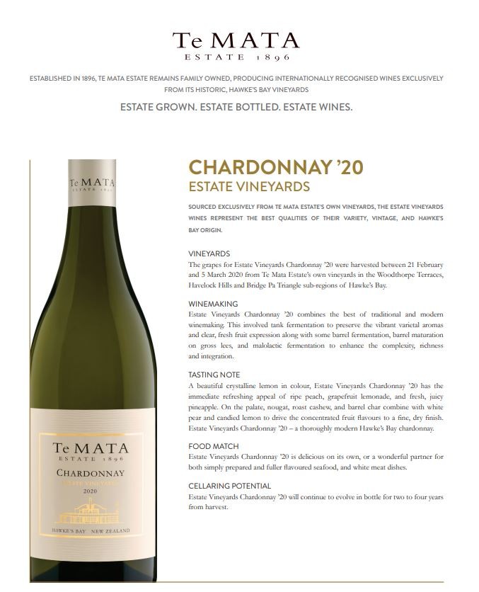 Te Mata Estate Vaineyards, Hawke's Bay Chardonnay 2020