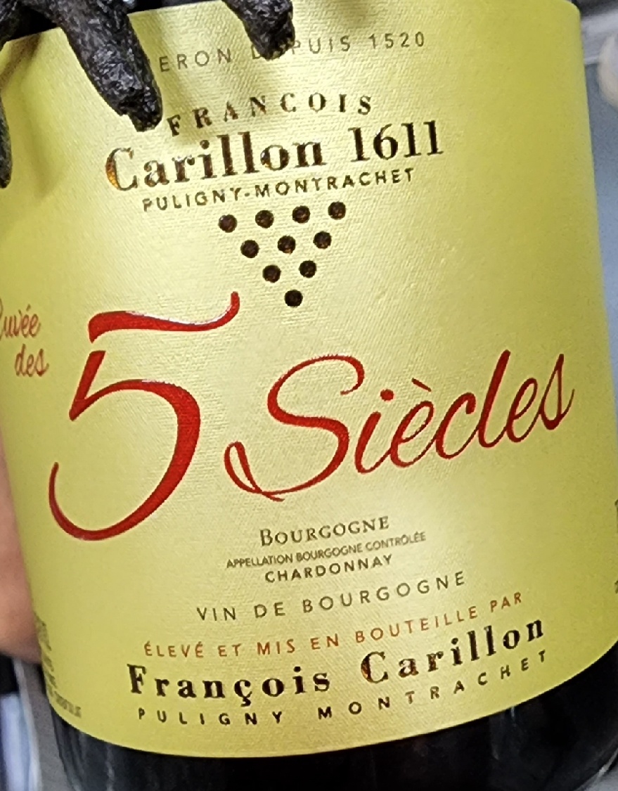 특히 요 보틀은 카히용 가문의 500주년(5 Siecles) 기념 퀴베다. 원래 부르고뉴 블랑은 퓔리니 몽라셰 마을의 2개 플롯과 뫼르소 마을의 1개 플롯의 점토 석회질 토양에서 재배한 33-60년 수령 올드 바인에서 손 수확한 포도를 사용하며, 스몰 배럴에서 1차 발효 후 12개월 오크 배럴(10% new)에서 숙성 및 바토나주를 진행해 완성한다. 그런데 이 녀석은 그중에서 훌륭한 배럴들만 골라서 완성한 듯. 퀄리티가 레지오날 급보다는 빌라주 급에 가깝다는 의견이 많다.