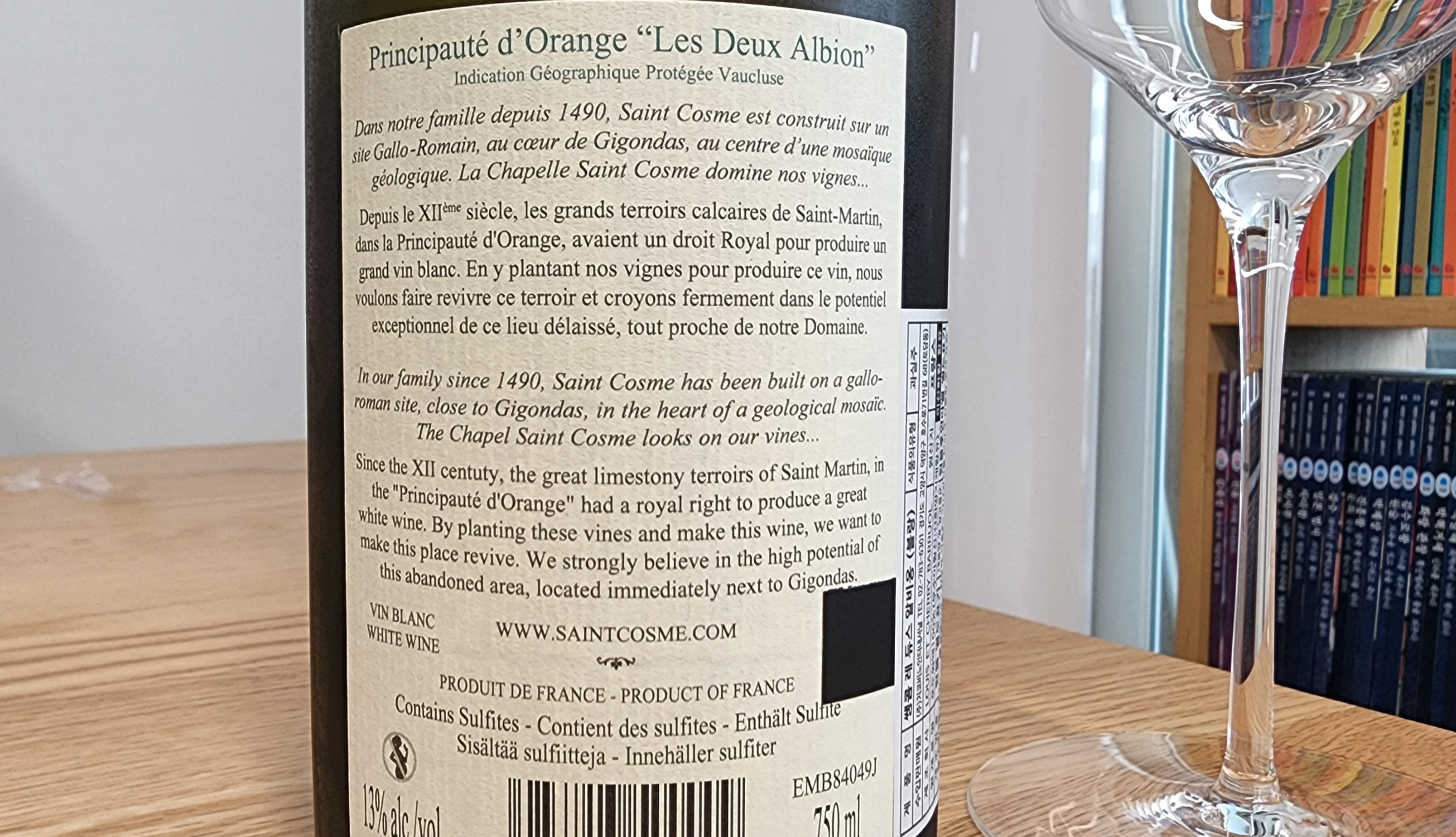 어라, 그런데 뭔가 좀 이상하다. <신물>에서 소개한 와인은 꼬뜨 뒤 론 루즈(Cotes-du Rhone Rouge)였는데, 요건 꼬뜨 뒤 론 블랑이 아니라 IGP 보클뤼즈(Vaucluse)다. 게다가 생산자 이름도 Chateau de Saint Cosme이 아니라 Domaine de Saint Cosme이라고 표시했다. 살 때는 미쳐 알아채지 못했는데 마시려고 보니... 속았;;;