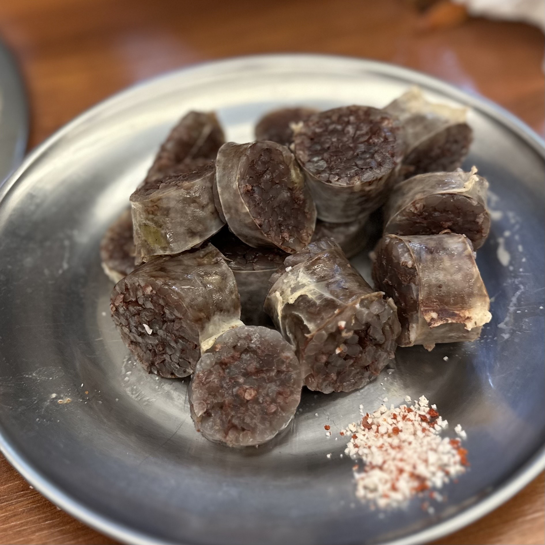 순대. 요건 평범하다. 아마 순댓국에 쓰는 순대를 조금 썰어서 내주시는 듯.