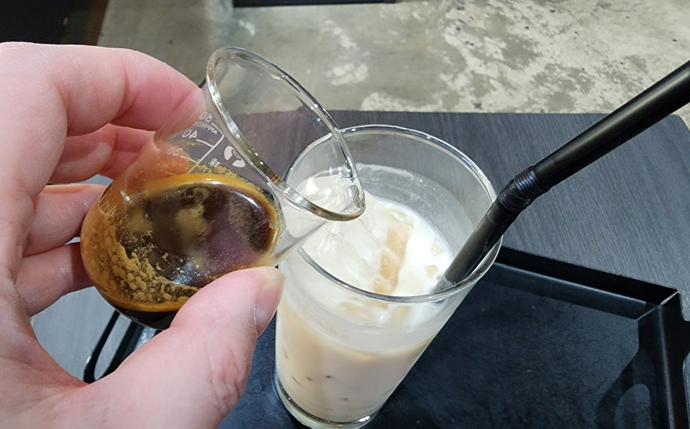 하지만 에스프레소를 섞어 보자. 아차, 지금 생각해 보니 에스프레소만 맛보는 걸 깜빡했네...