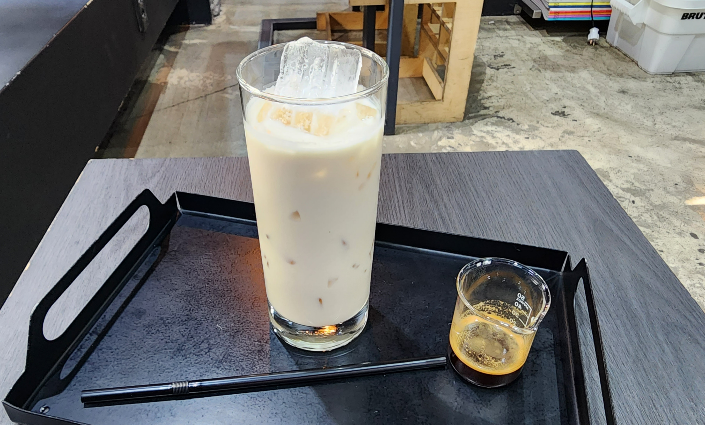 내가 주문한 땅콩라떼+에스프레소. 일단 땅콩 라떼를 즐기다가 나중에 에스프레소를 섞으면 된다. 라떼는 땅콩의 고소한 맛이 아주 좋은데, 단맛이 과하지 않고 적당하다. 밸런스가 좋아 요것만 그냥 마셔도 괜찮을 듯.
