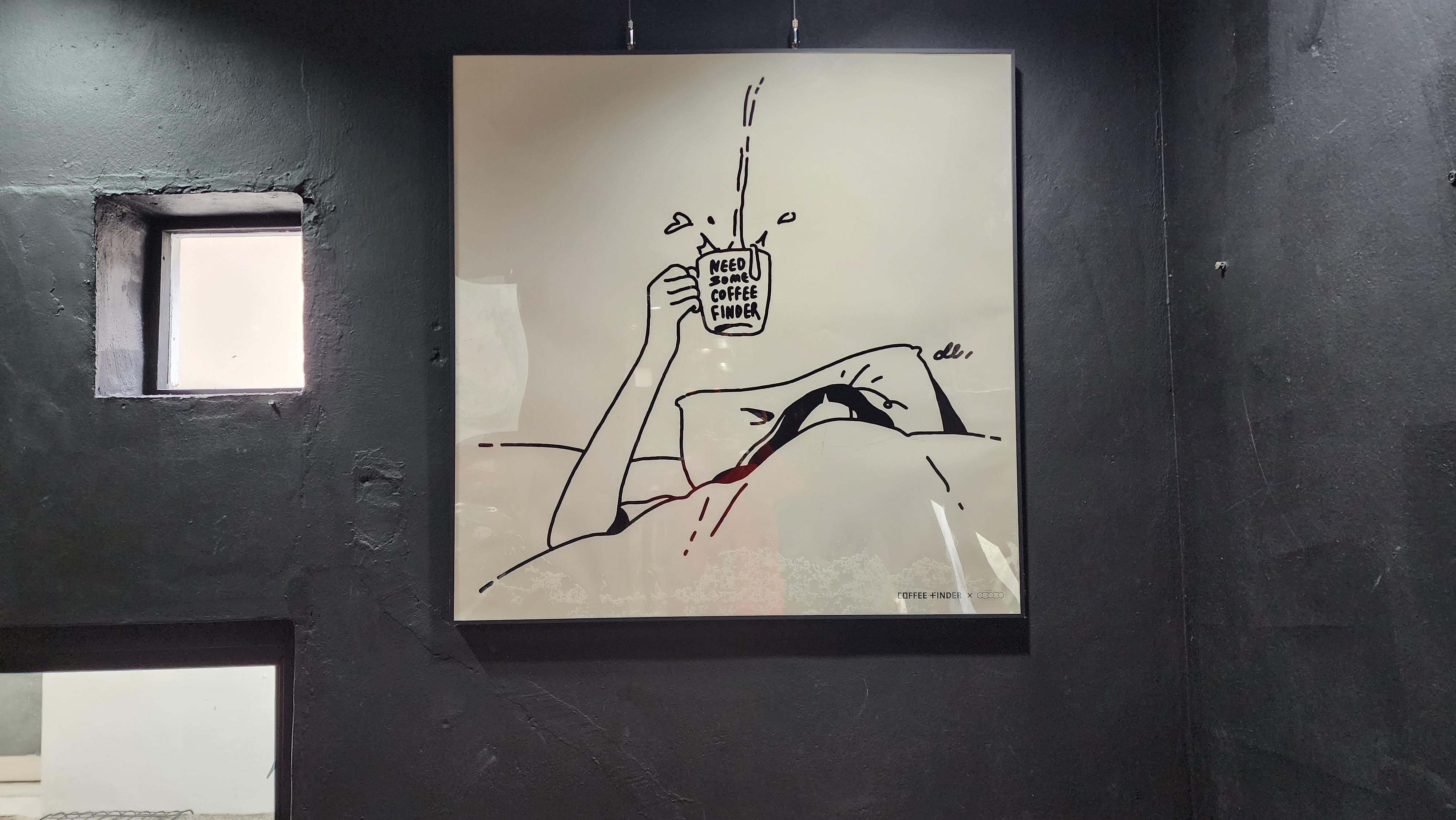 내가 앉은자리 위에 걸려 있던 그림. 이런 위트 있는 그림들, 감각적인 그림들이 카페 이곳저곳에 많이 있었다.