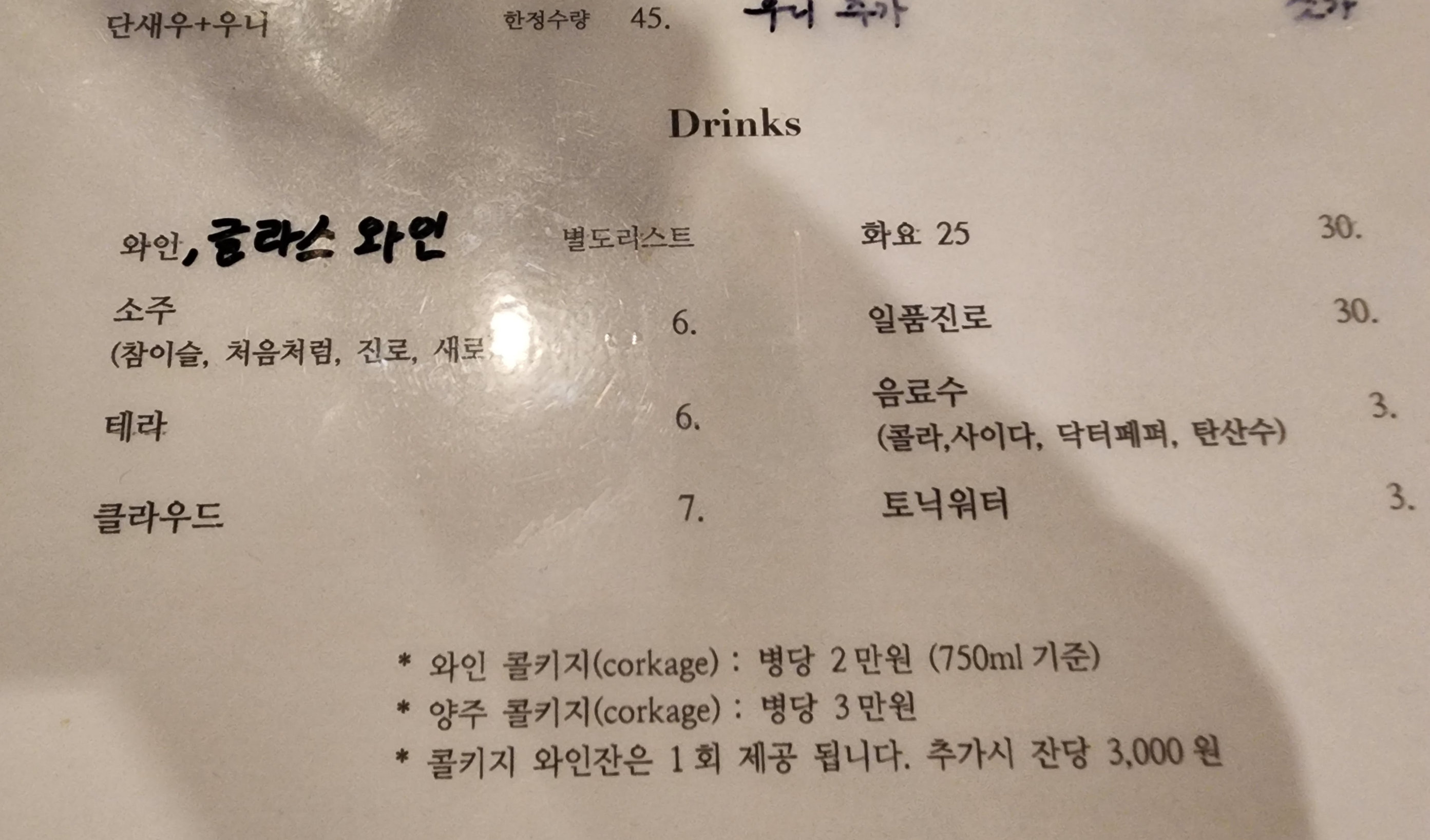그런데 3개월 만에 콜키지가 올랐다. 원래 1만 원이었는데 2만 원으로...ㅠㅠ