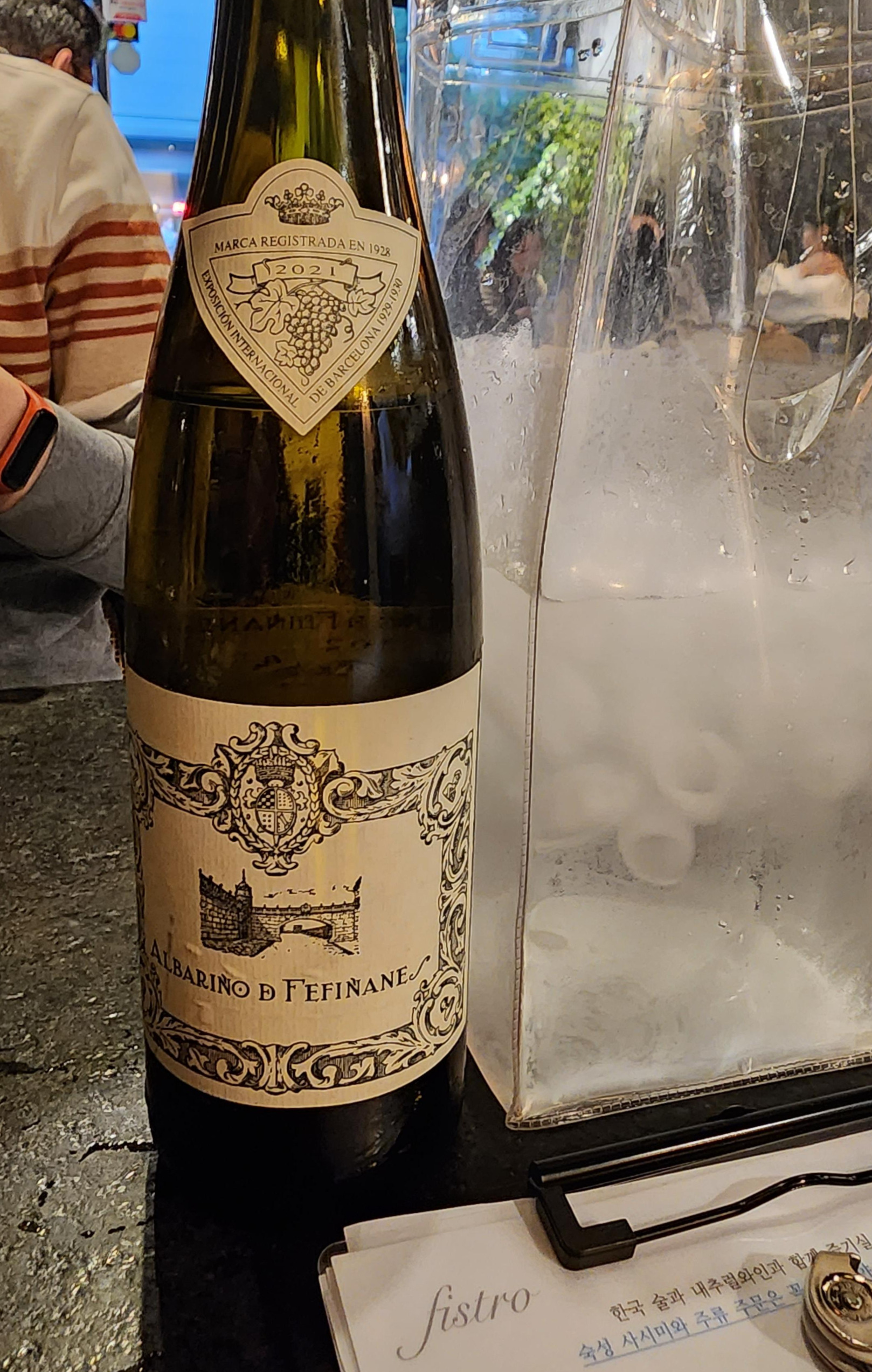 알바리뇨 데 페피냐네스(Albarino de Fefinanes). 친구와의 약속을 위해 준비한 두 와인 중 오른쪽 와인이다. 생산자 보데가스 델 팔라시오 데 페피냐네스(Bodegas del Palacio de Fefinanes)의 기원은 17세기까