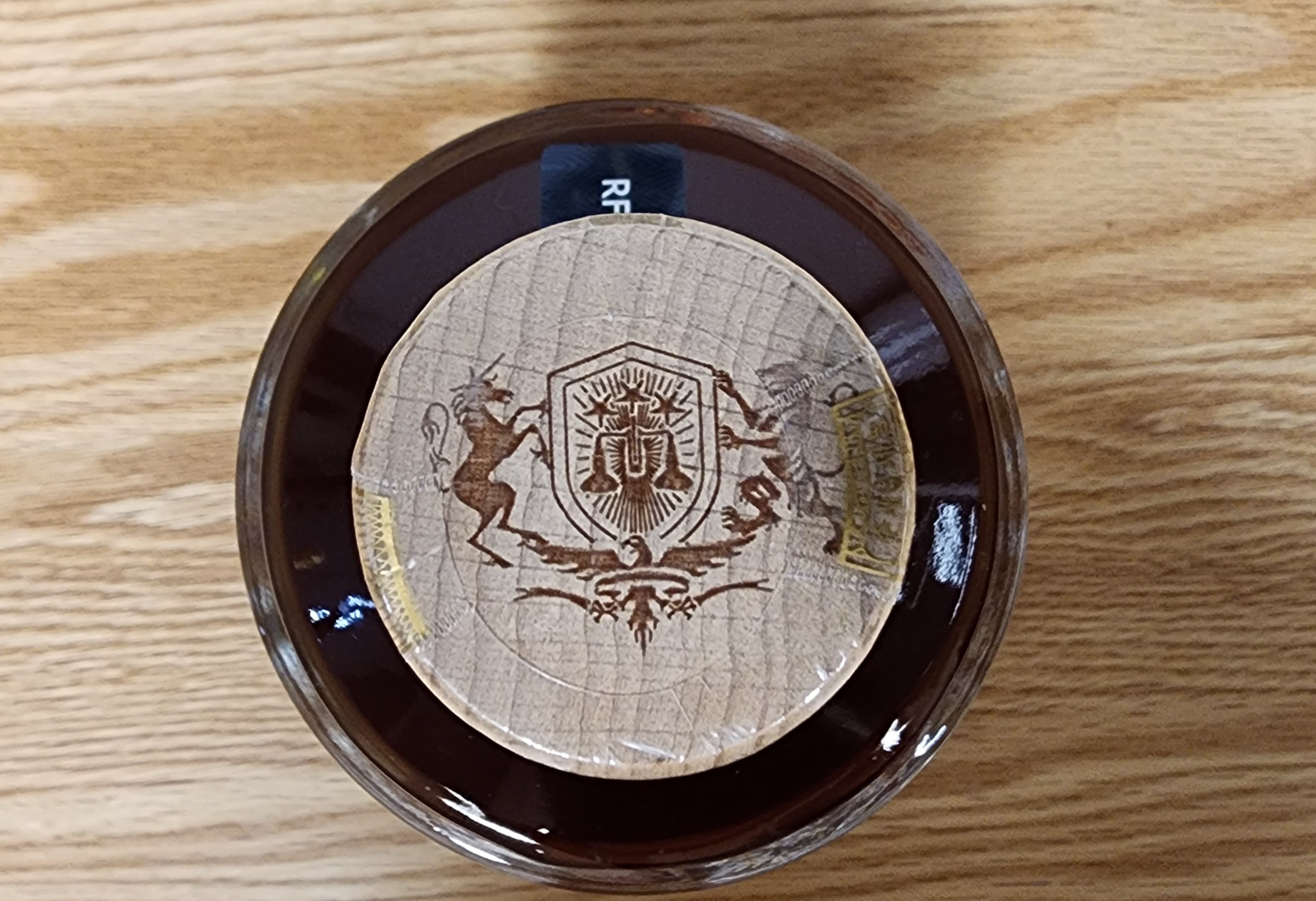 뚜껑에는 쓰리 소사이어티의 로고가. 한국, 스코틀랜드, 미국을 상징하는 호랑이, 유니콘, 독수리다.